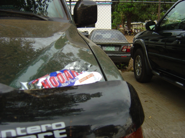 The wrapper of a freshly eaten Hooah bar, resting on a 4x4 vehicle in Monrovia, Liberia. These Hoaah bars made my stay over there a litlle bit easier. Thanks to CCD!!
