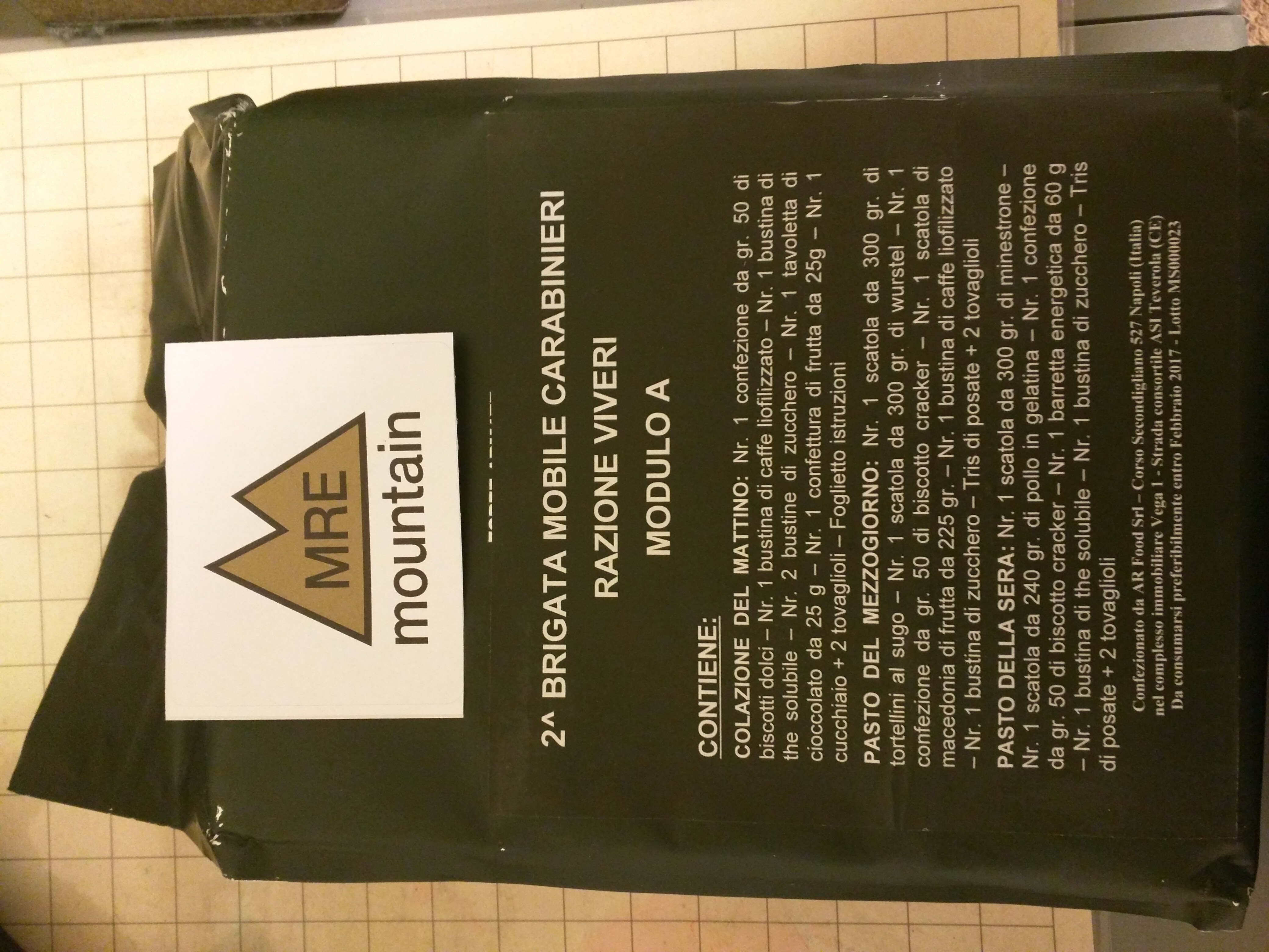 The back of the Carabinieri IS a sticker over the regular army back writing.DonJa wrote:Haven't the Carabinieri rations been stickered for the last few years? The stickers have changed design a bit, but at a minimum usually contain lot no. and production date. Whenever I've seen Italian Army or Carabinieri rations where the sticker has been removed or defaced, and it's not mentioned in the description, it's a red flag.wats6831 wrote:This is a Carabinieri variant. The front is not always different. I have had Carabinieri units that the front was the same, and others that were different. Each year is a bit different.Telemachus wrote:This one has Carabinieri in the description (which doesn't always mean anything).
