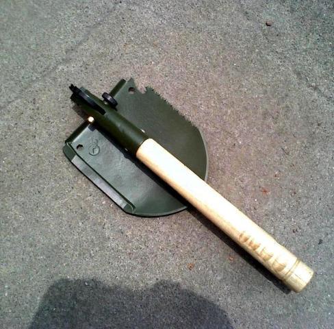 "The infantry spade does not have a folding handle, and this is a very important feature. It has to be a single monolithic object. All three of its edges are as sharp as a knife. It is painted with a green matt paint so as not to reflect the strong sunlight."