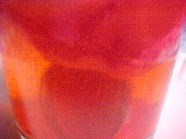 Apple Cider and Strawberry Fruitsoup! That fruitsoup was so unique and amazing! I drank it hot just now and put 2 ounces or so still in that clear cup in my fridge I'm trying it cold soon.
