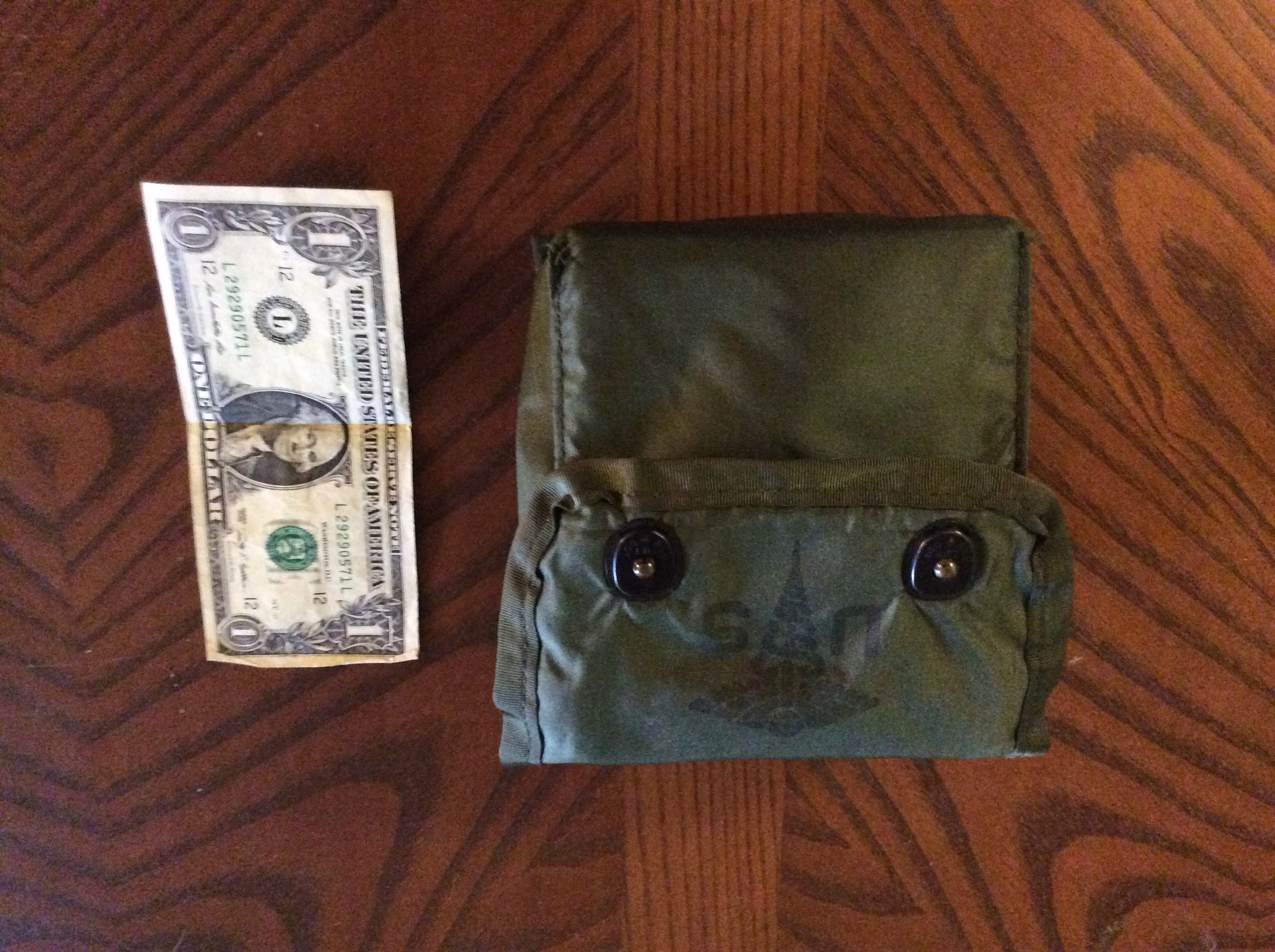 Greetings ration enthusiasts! Fishing season is coming up so I bought a new cheap stove to pack on my day trips. I bought this cheap firebox imitation on eBay for $8 shipped. It is cheap stamped steel but will burn alcohol, fuel tabs, or sticks and twigs with equal ease and is very light and compact. I have a setup that will allow me to have 2 burners in a kit that fits perfectly into an old-style army issue first aid kit pouch. It contains the firebox stove, esbit stove, 24 fuel tabs and a lighter and matches. It fits easily in my day pack or can be worn on the belt or web gear.