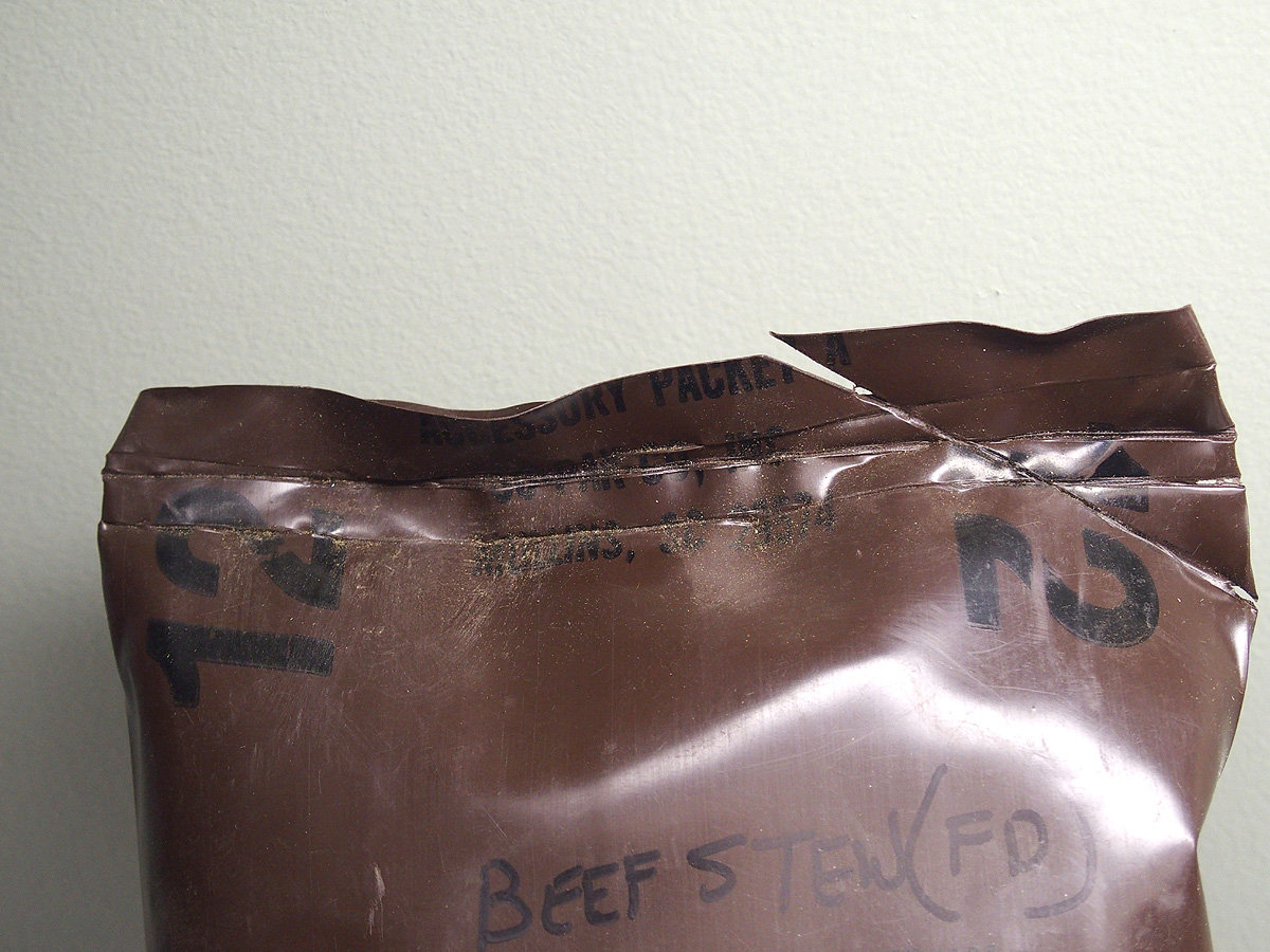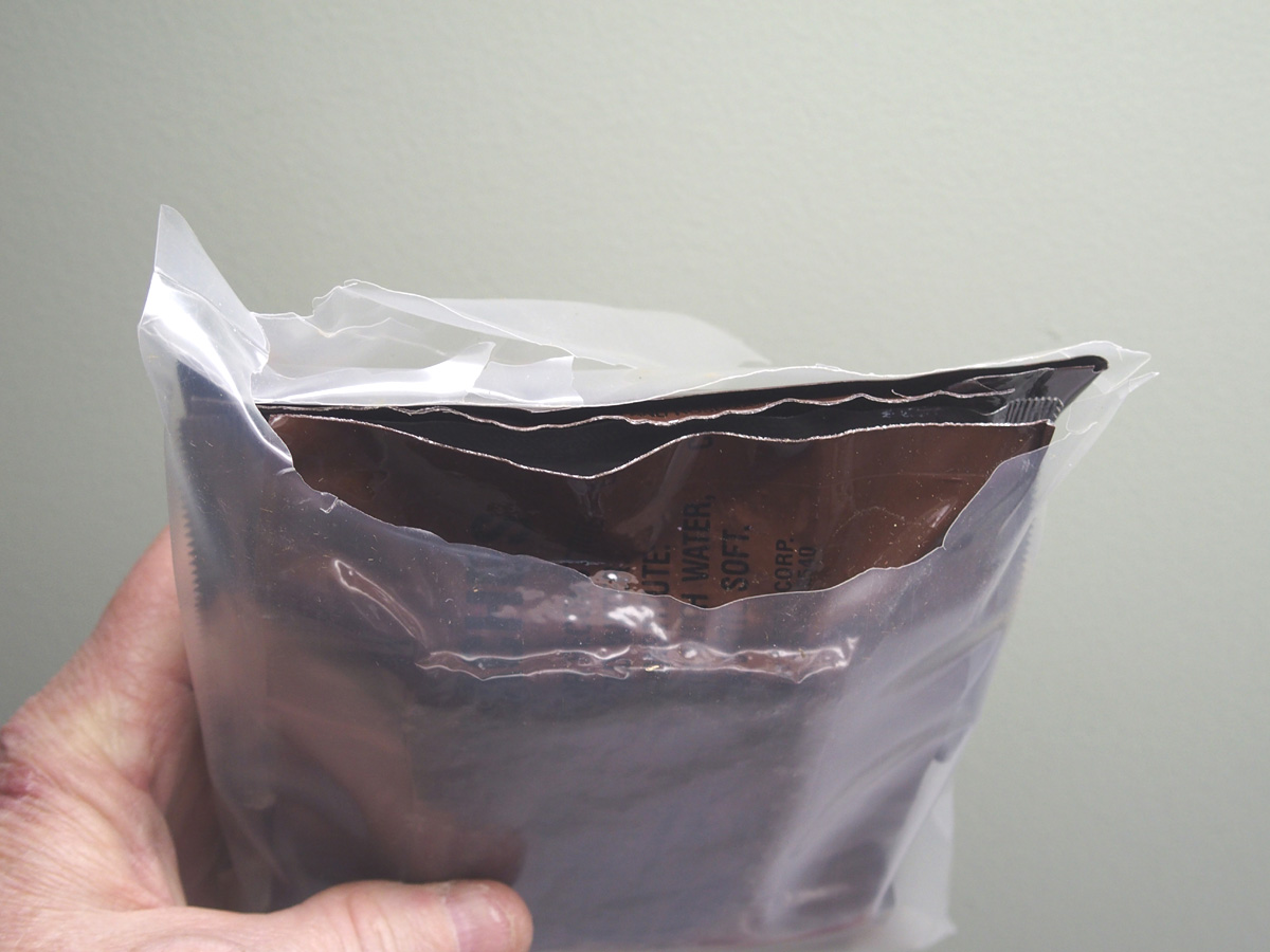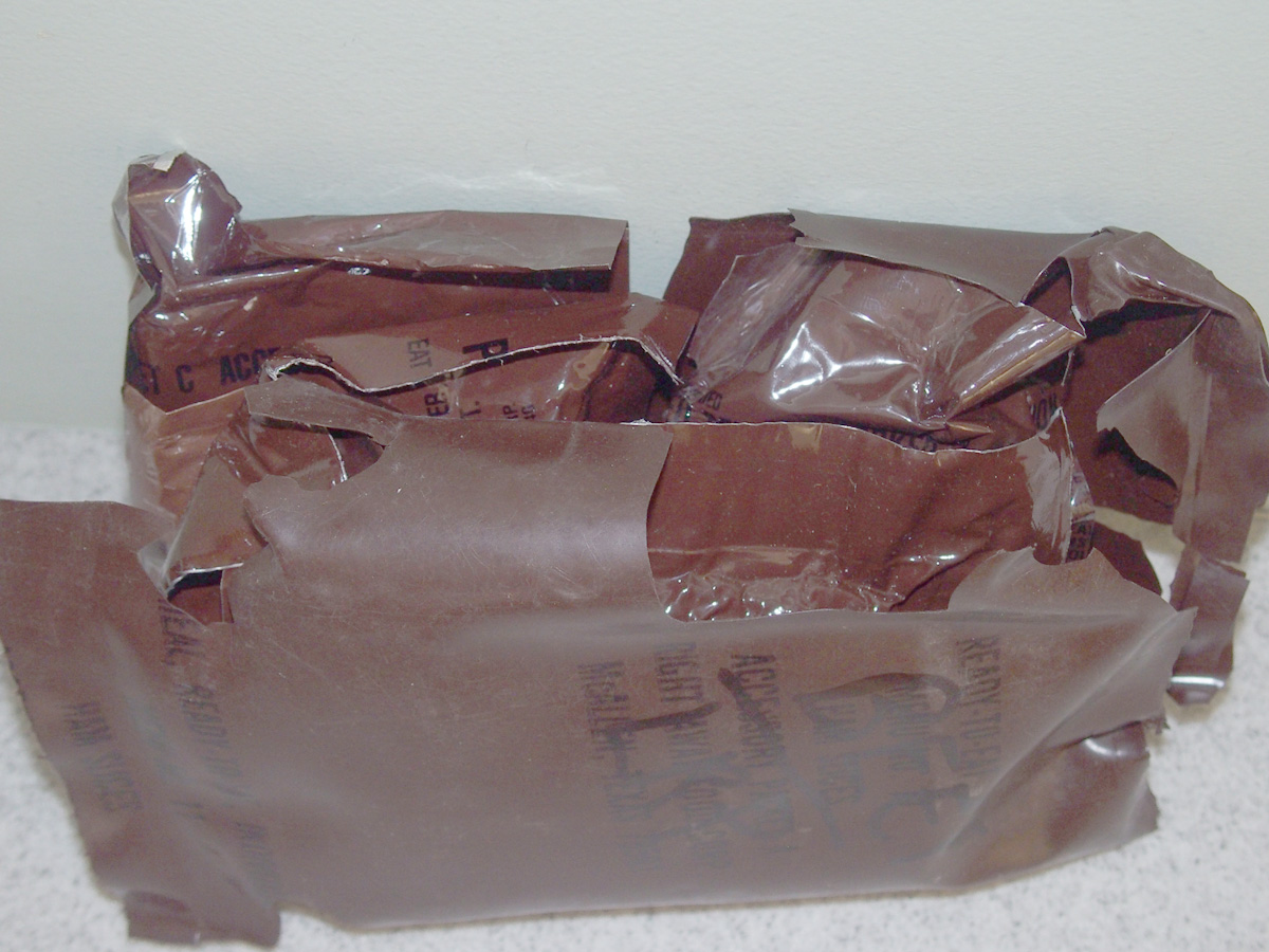 I found one of the Brown Pouch Home Assembled Beef LRP's had the plastic deteriorating and pulled it out of the box to examine the contents.