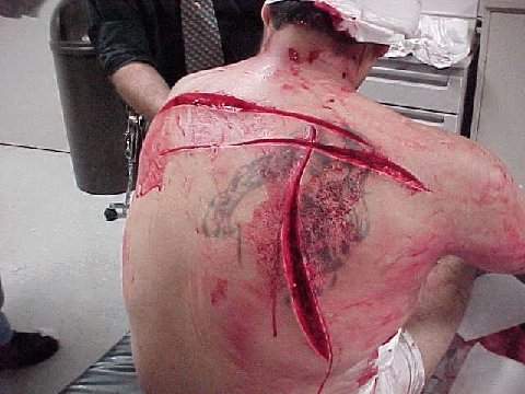 Interesting that the wounds look exterme and graphic, but they are not fundementally life threatening.