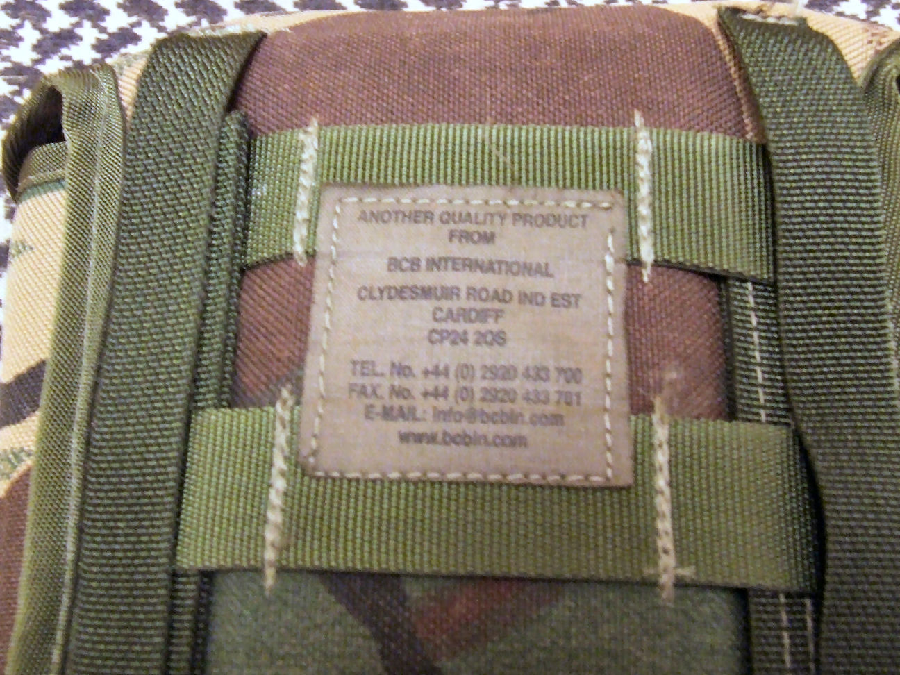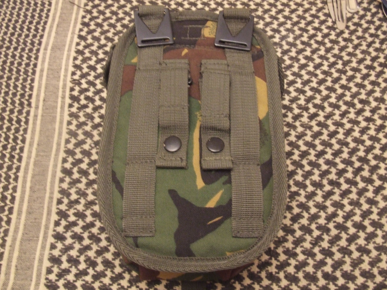 Front and rear view of my BCB Crusader pouch. Notice the difference in camo between this pouch and the mess tin carrier.