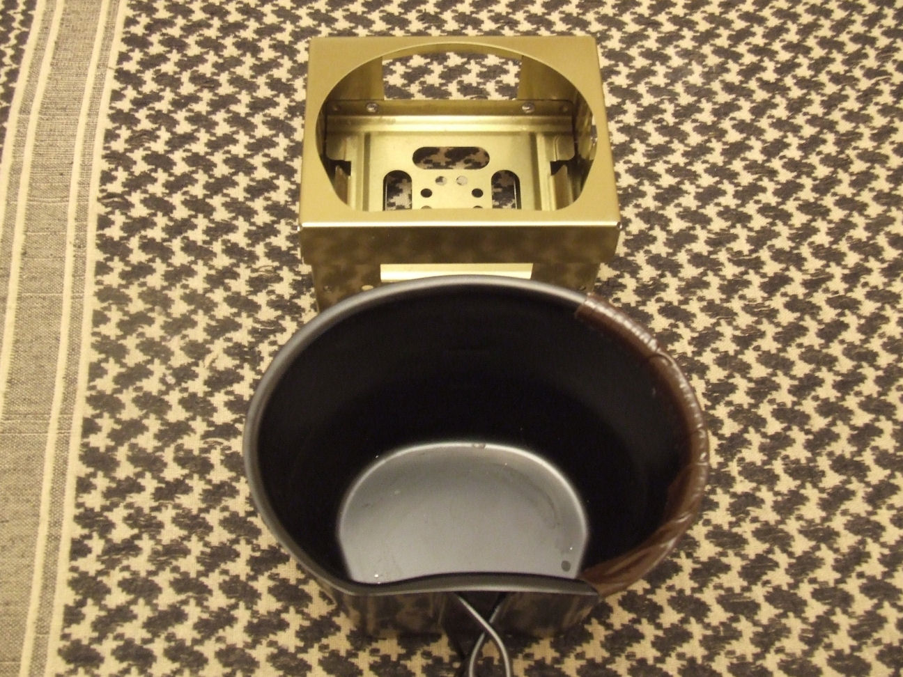 "Hexi" cooker fitted with Drinking Mug Stand". If I remember correctly, our friend Housil queried if there was a special vessel used, this is it, from my BCB Crusader set.