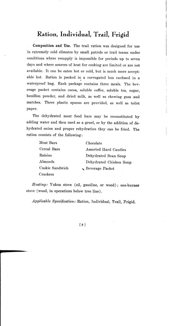 The only 1950 cold weather ration I can find is this Ration, Individual, trail, frigid, that I thought Hagens pack was. Wrong!