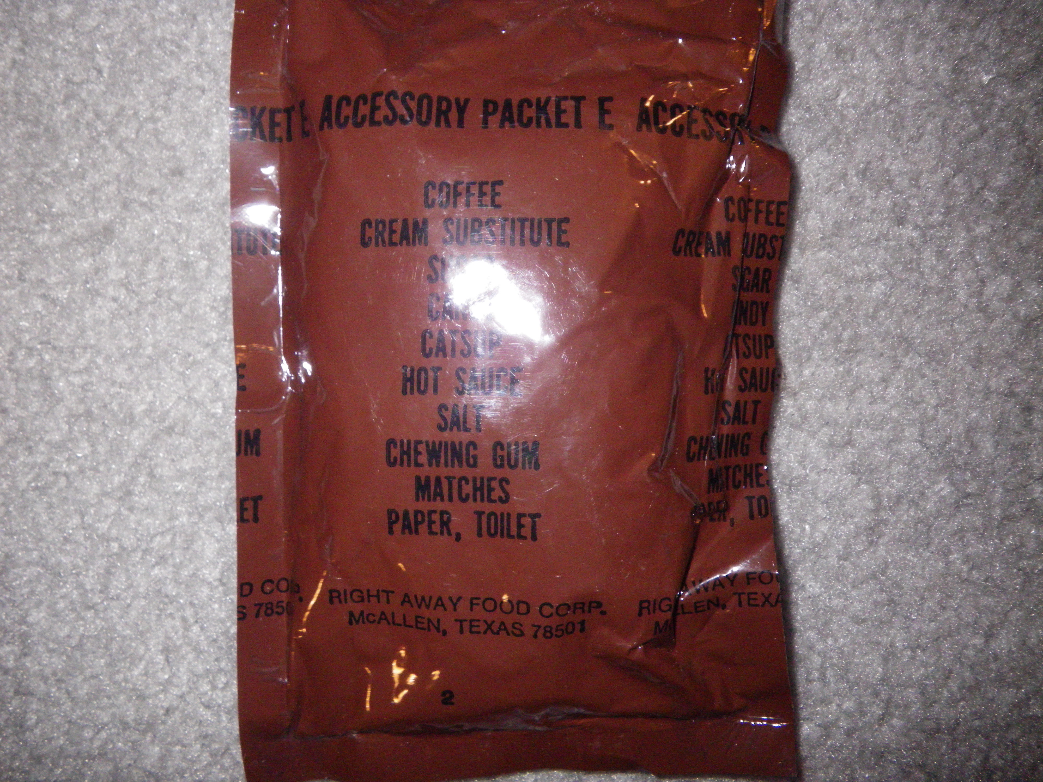 today one more Accessory Packet out of a Food Packet, In-Flight Individual. I guess the Date of Pack could be the sixties.