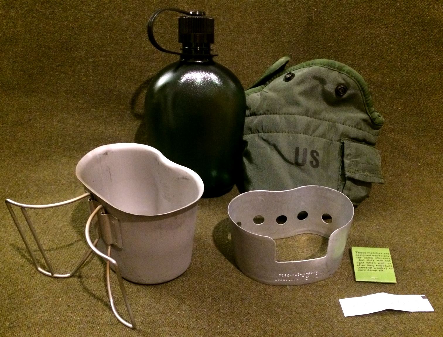 I'm using a German mess kit (thanks Housil! :D ), and found that the inside has plenty of room to hold all of the essentials. When camping, I take it along with my US canteen, which I've replaced with the Nalgene version that doesn't leak, but is a drop-in replacement for the US issue canteen. With the canteen cup and stove that are a part of that, these two items are usually all that I need.