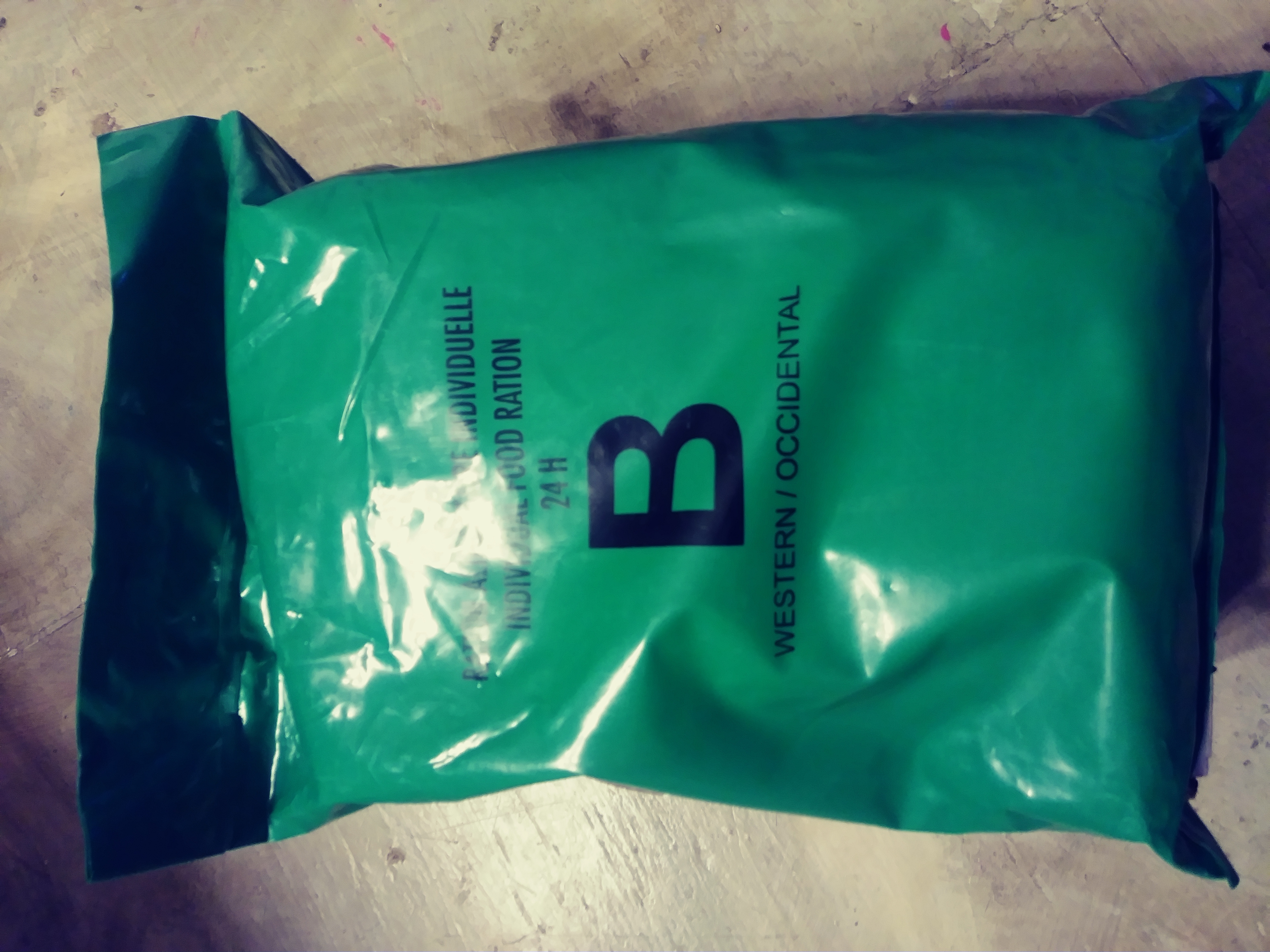 Just got in one of the Grab Boxes from BlackDogBob and it is amazing! Tons of food for the price. Most of what he sent me comes from a German Type 6 Combat Ration but with many many extras thrown in. From what I can find online BDB included at least two extra mains, an additional main from what I believe to be a French ration, two additional food bars and I can't count how many additional drinks. One of the real gems to me in this box are the German Ration chocolate. I barely had the box open before I dug into the Schokolade 25 gram bar right away. There are several things in this box that I've wanted to try for a while now, including the Nescafe 3 in 1 and one of the Canadian ration breakfast cereals. YUM