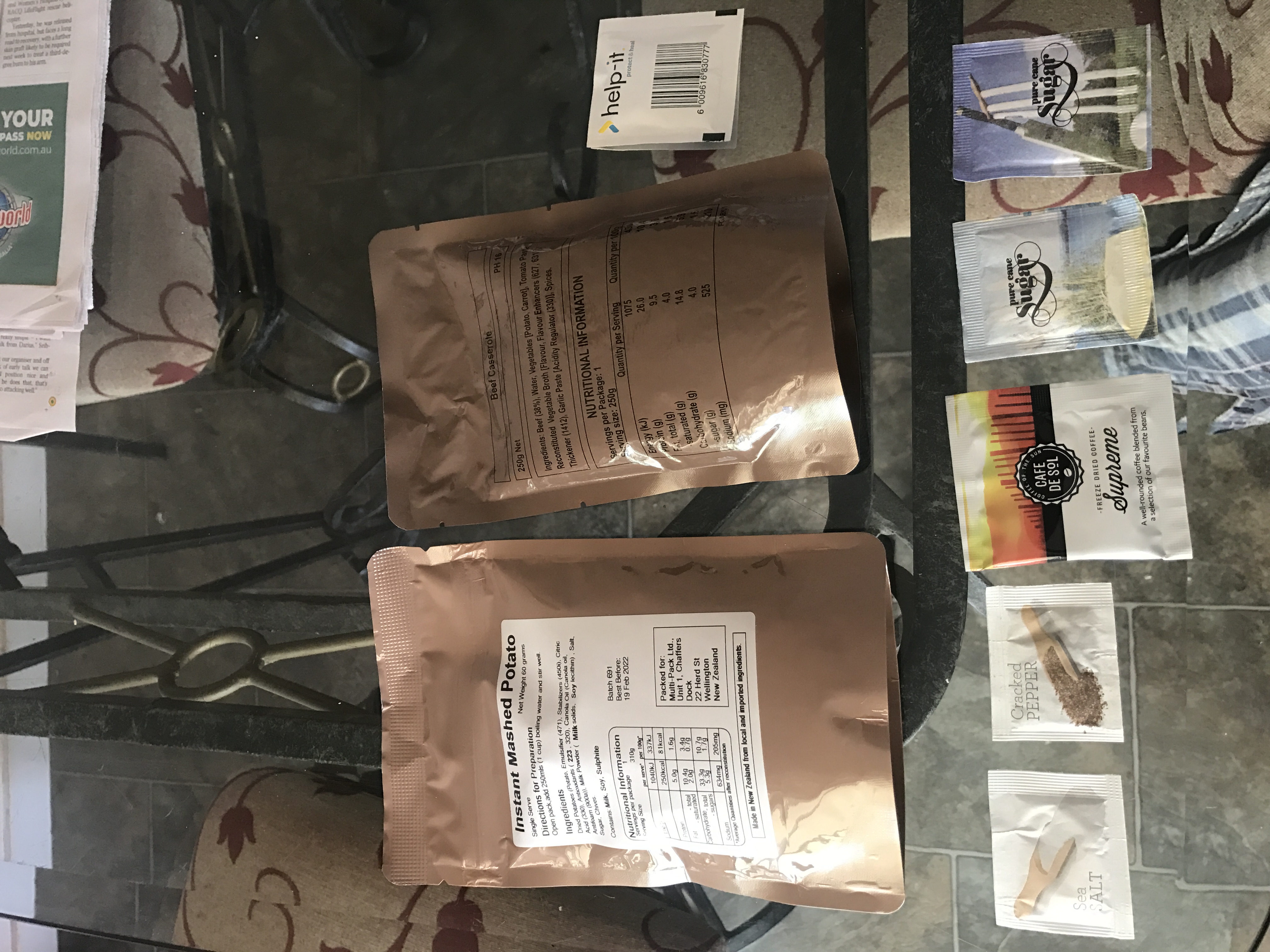 G'day all. I'm new here to the forum and I would like to share this picture review of an Australian civilian ration available here in Australia. Everything in this ration besides the coffee, tea, sugar etc. are found in the Australian CR1M ration. The main meal in this ration was Beef Casserole. Thank you for taking the time to read this review and any feedback would be appreciated.. The unopened ration pack with ingredients list. . The contents laid out. . Breakfast.. Lunch contents.. The contents of dinner. I hope you all enjoy this review. Any feedback would be appreciated. If you want to see other ration pictures of mine look me up on instagram at beniffland5, cheers from Australia Ben.