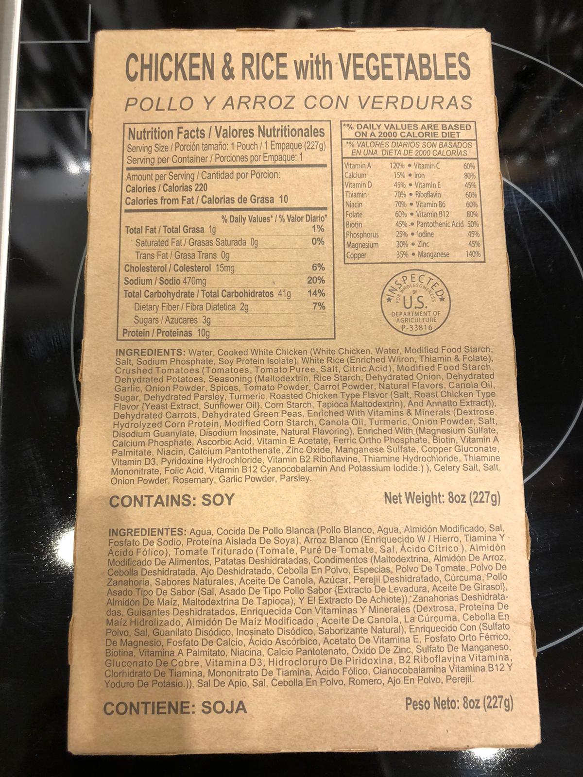 From the meetup in Simpsonville I brought a "Chicken & Rice w/ Vegetables" with me: