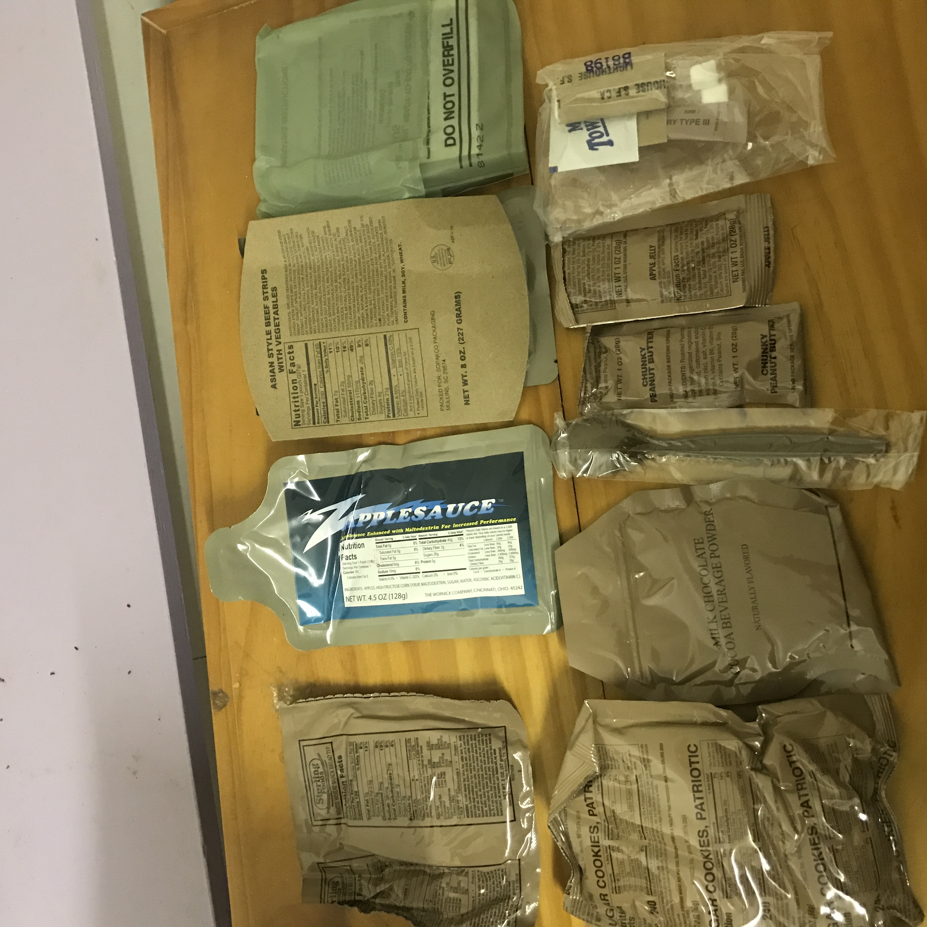 I heated up the main in some boiling water couldn't be bothered using the FRH. But once everything was ready it all tasted good. The main was very tasty with big meaty strips of beef and decent veggie pieces with a sort of Asian flavour to it. The snack bread was kind of hard but was still okay with the peanut butter and apple jelly. The sugar cookies tasted great and the milk chocolate drink was kind of watery but I may have just added a bit to much water lol. The zapplesauce was great to nice and sweet.