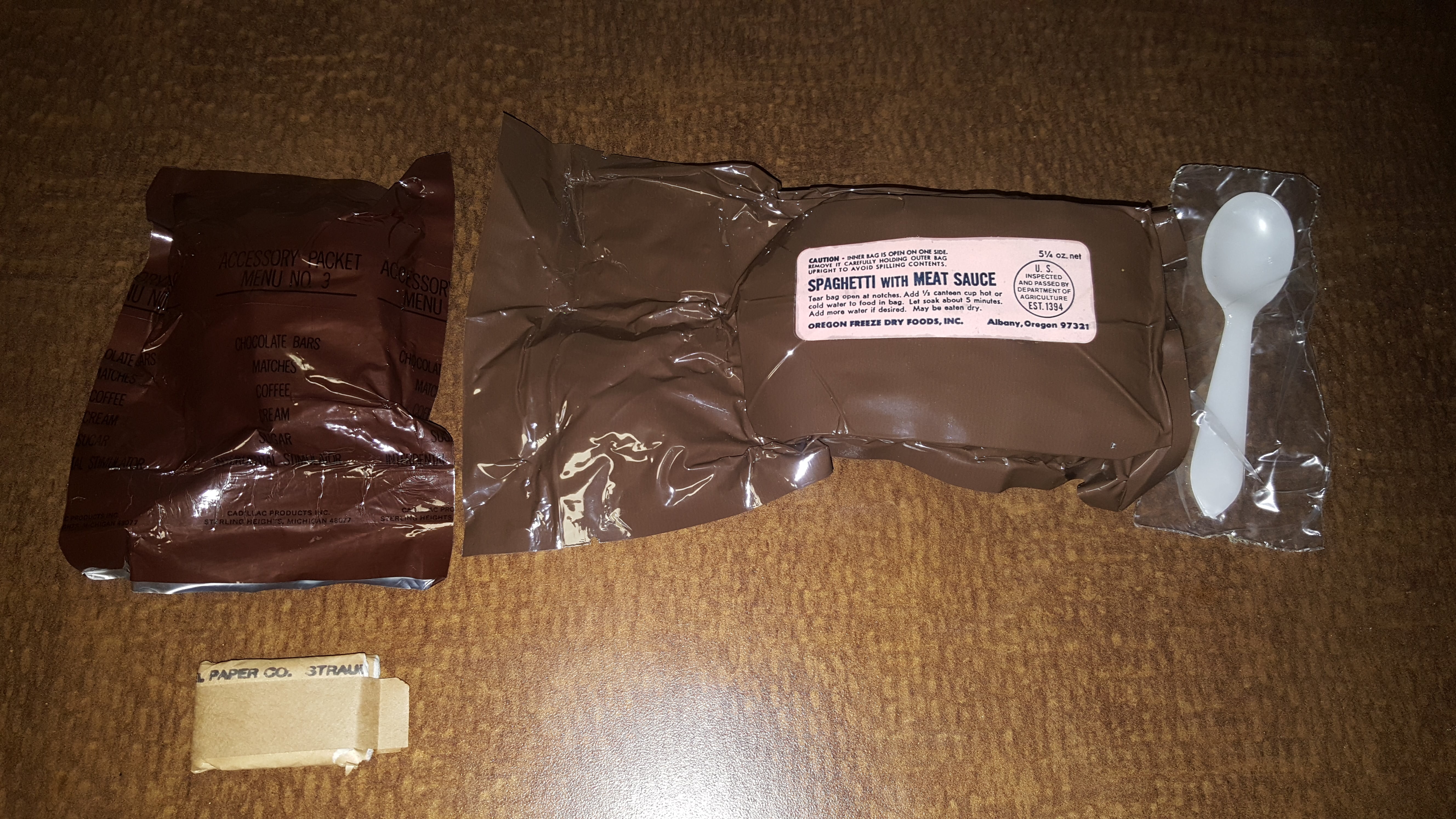 I'd been looking forward to trying another one of these LRPs from a case of 1977 rations I recently acquired. I had kind of a weird hankering for a Mountain House Spaghetti so I decided to try this one for breakfast. Surely, many normal and perfectly sane folks have some old LRPs laying around to consume for breakfast, right?