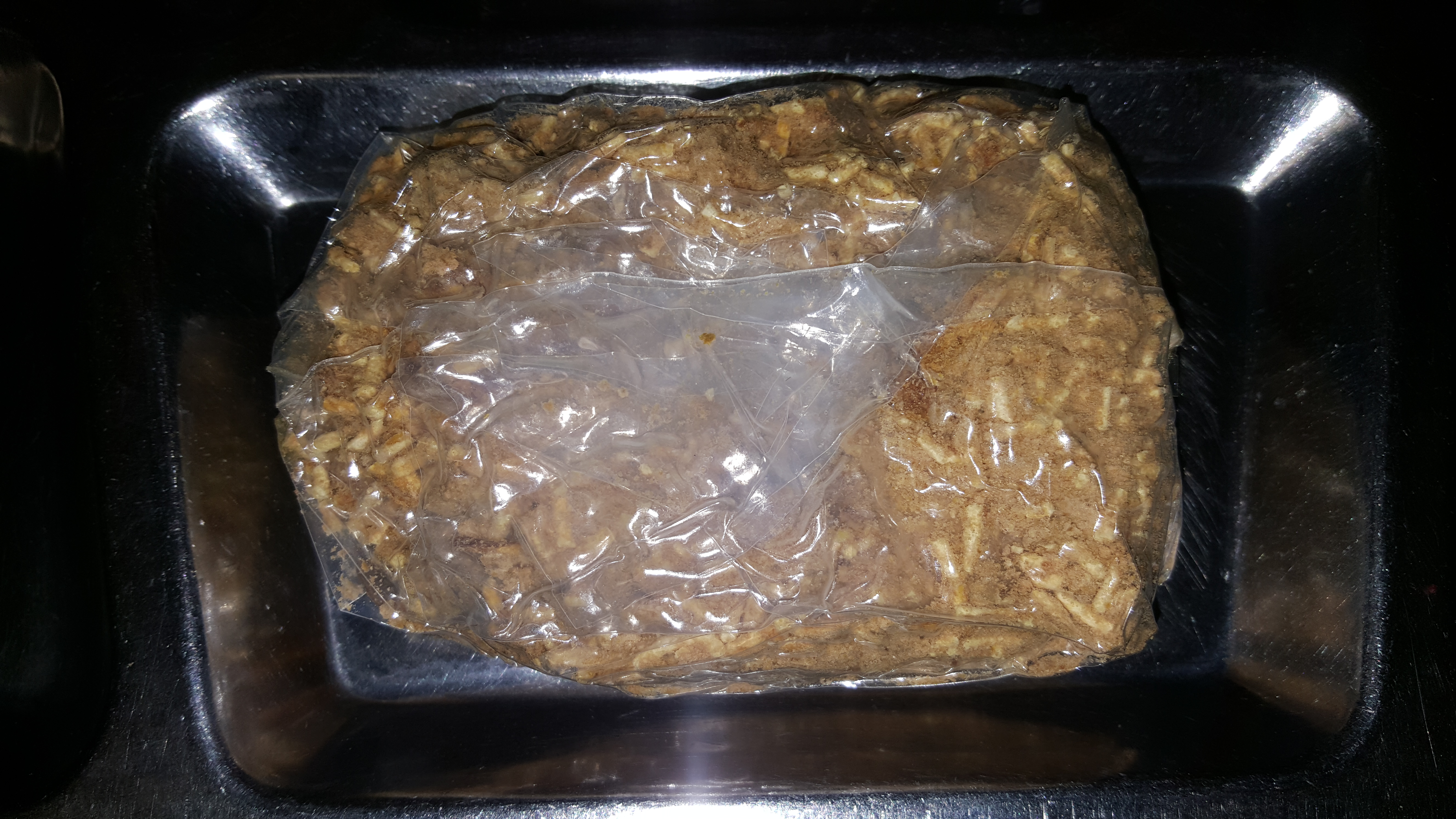 Here's a look at the spaghetti with meat sauce prior to adding water. It smelled a lot like old cardboard so I was pretty skeptical but these all seem to smell pretty weird whether they are spoiled or not. I took a few small bites of it dehydrated and it tasted okay so I decided to add boiling water to it and let it set for about 5 minutes. In the meantime, I prepared the coffee with sugar. Unforutunely, the creamer was clumped up so I couldn't use it. The 1977 version of this meal has nothing on the current production Oregon Freeze Dry Spaghetti with Meat Sauce. The beef was too chunky and I could really taste the salt in it. I think meatballs would have been better. It had a very cheap tomato sauce/paste flavor in comparison and the meat was pretty low quality because I think it had bits of bone in it. Overall, it was still edible but not the taste I was hoping for. I'm glad they've really improved these meals over the years. The two chocolate candies were no longer good. I took a small bite of both of them and they were pretty sour. The coffee was a good way to finish it off, I just wish this ration had cocoa included so I could make a mocha. Actually, I believe all rations should come with cocoa.