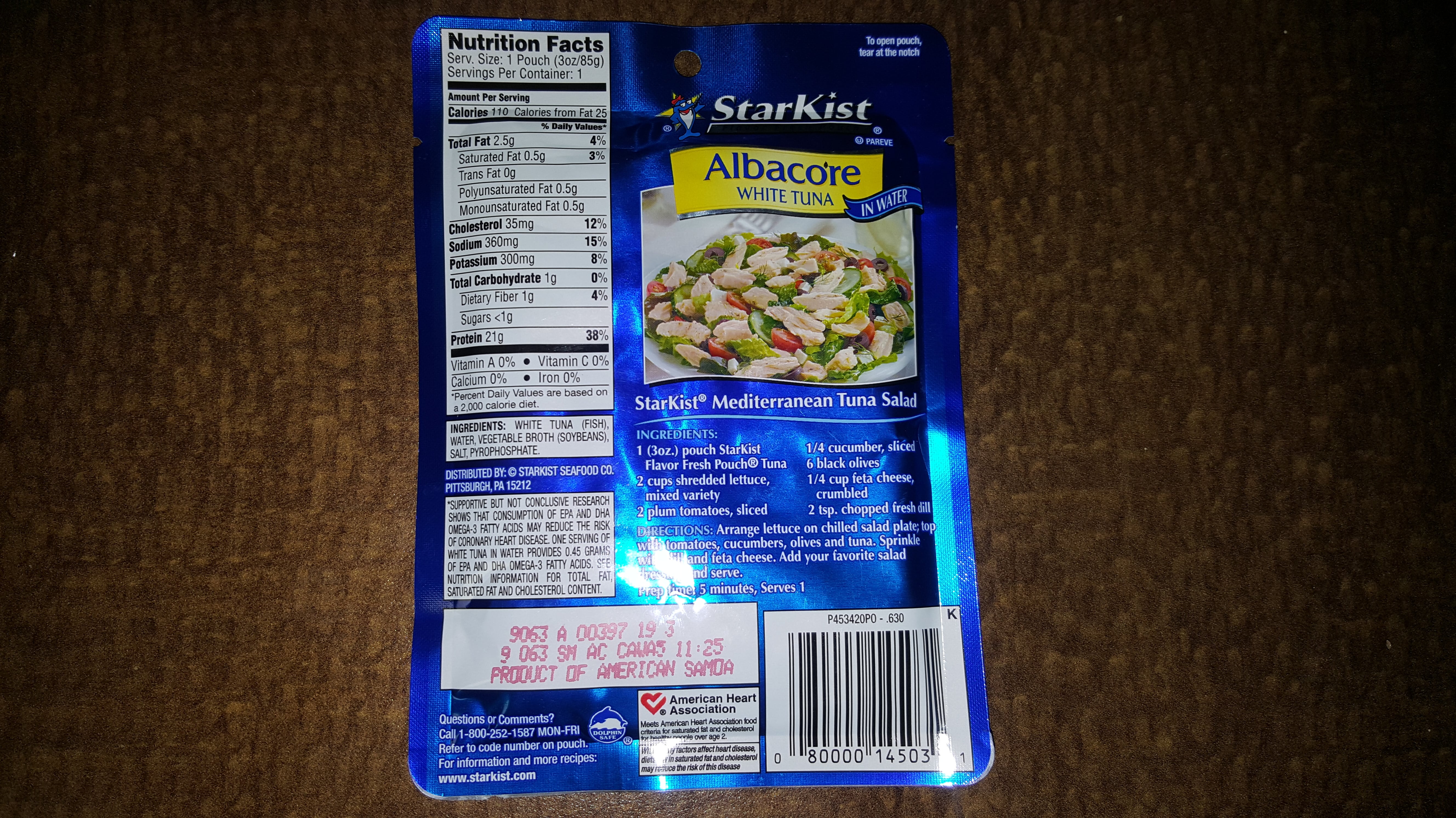 For those that are curious, here's what the back of the tuna pouch looked like.