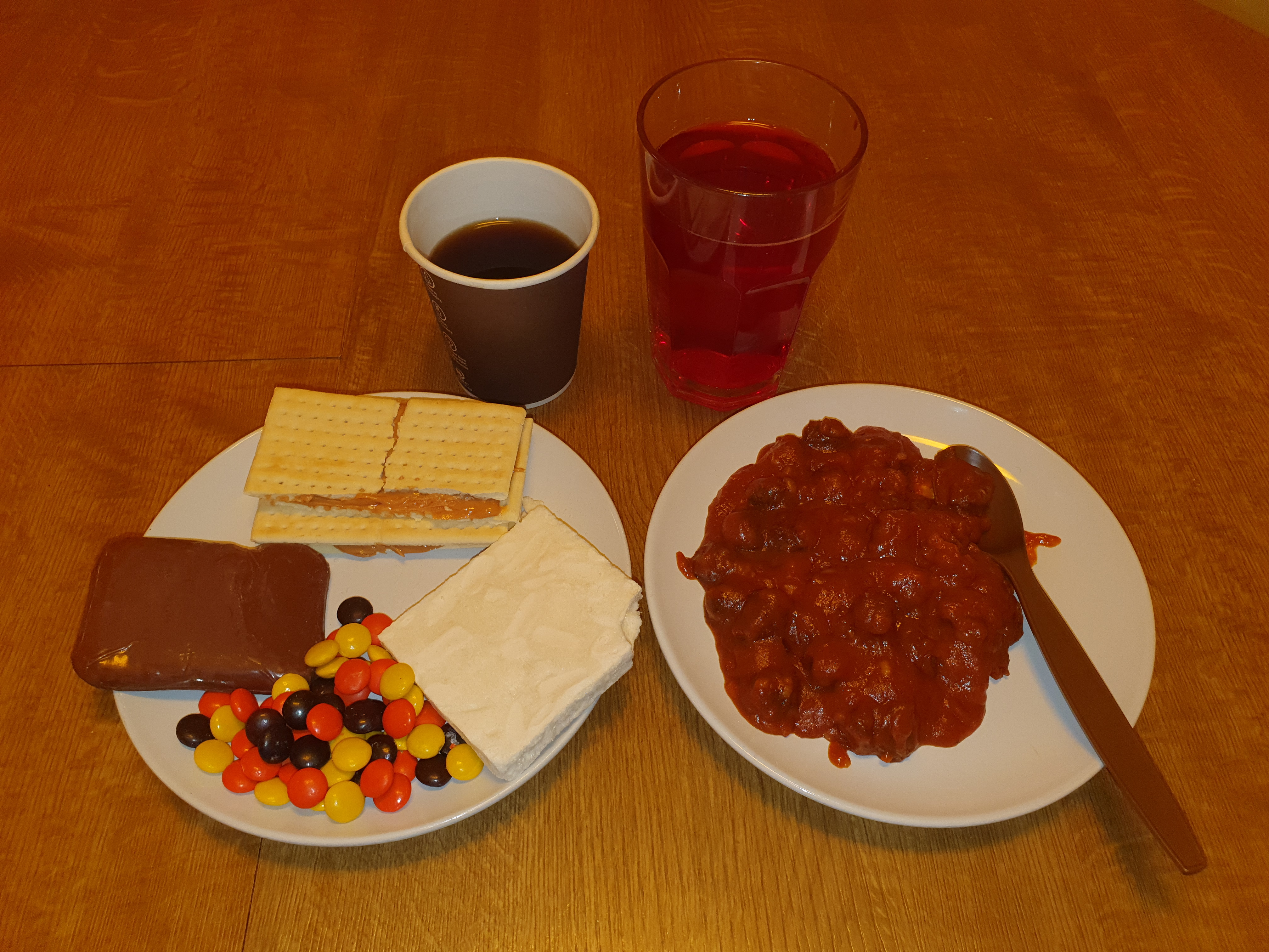 the meal ready, everything was in good except the coffe creamer and a strange after taste eating the reeses.