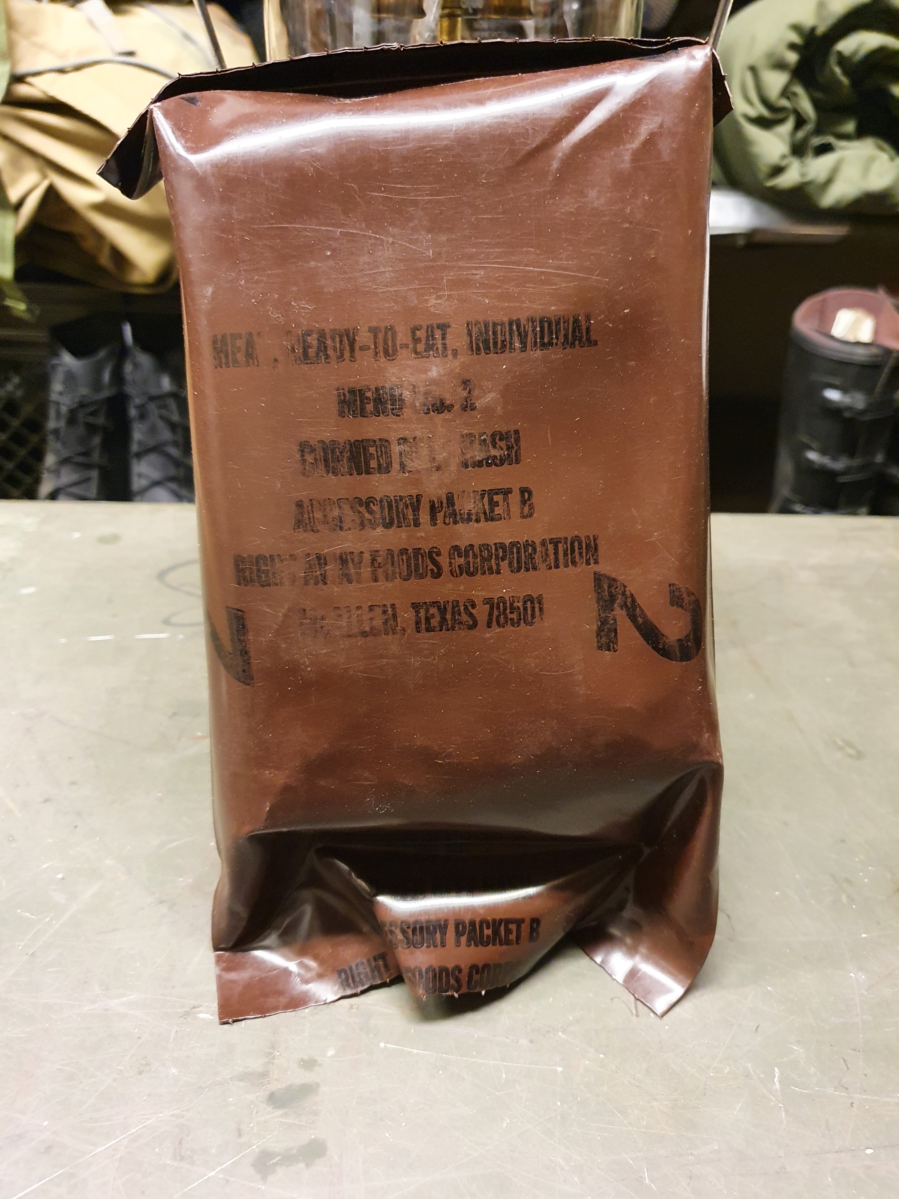 Good old fashioned mil spec government contracted food provided by the lowest bidder. Yumm!