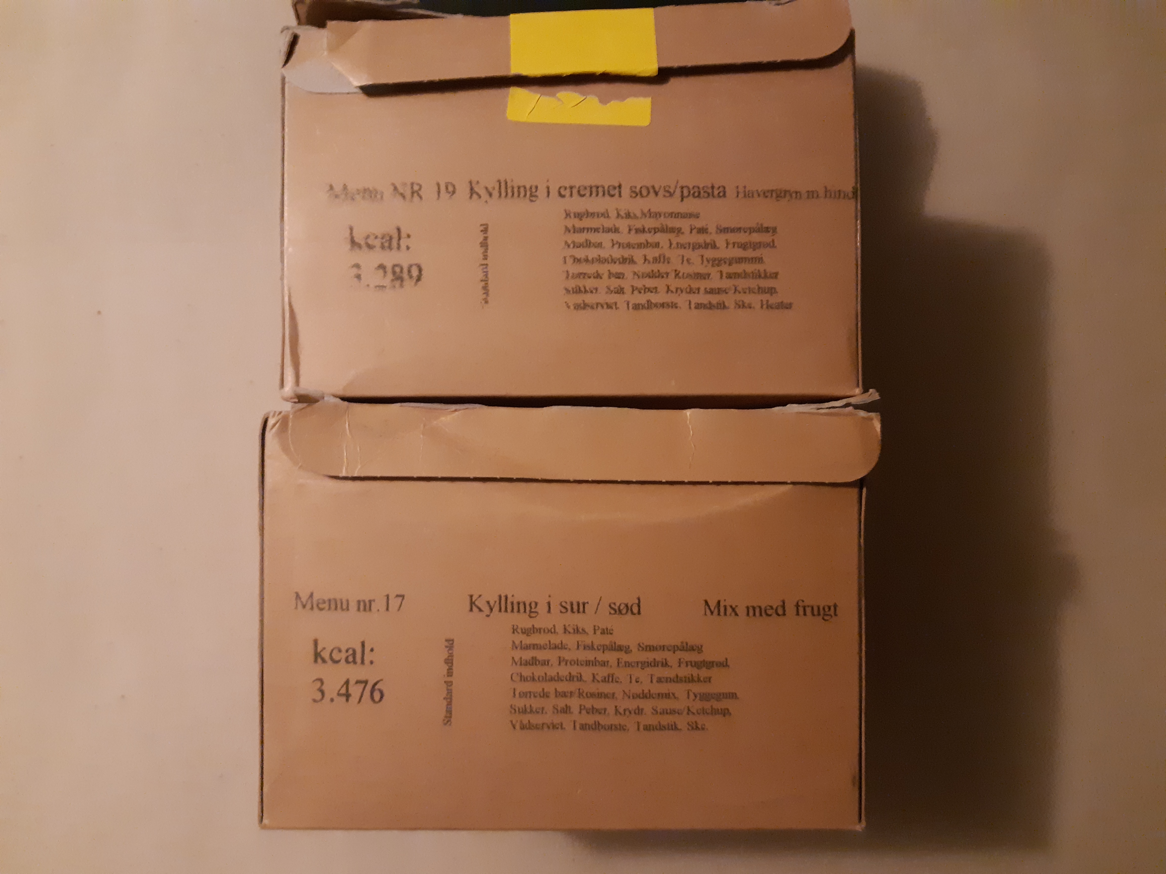 In the picture of Danish ration content i forgot to add the two flameless ration heaters, i got them both opened but i think its all still there.