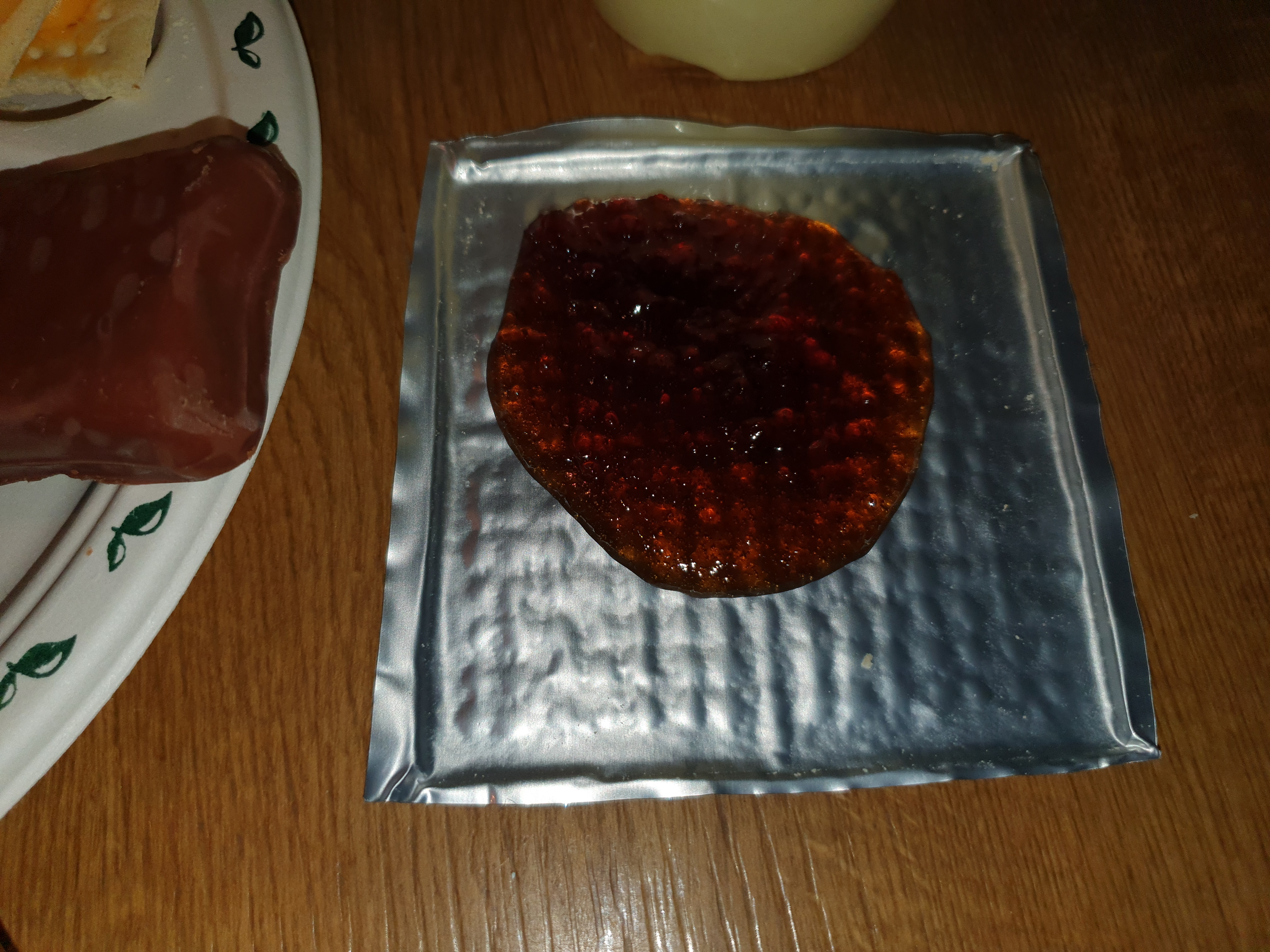 The apple jelly, i normaly dont like jelly stuff but this apple jelly was good.