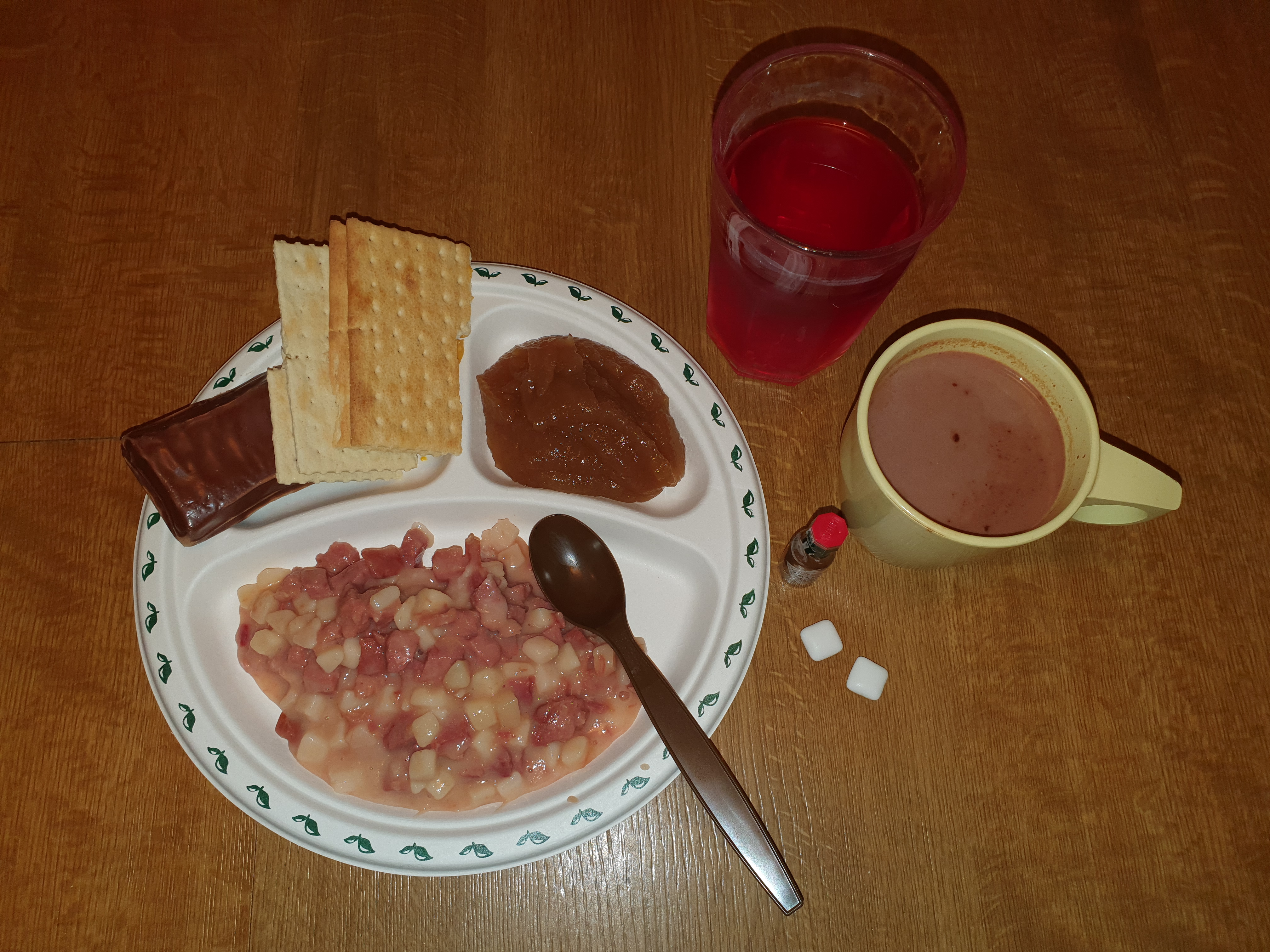 The meal plated. the Escalloped Potatoes w/Ham was wounderful, the cracker was just like normal but used fresh cheese spred than the old one (opened the old cheese spread and it looked fairly