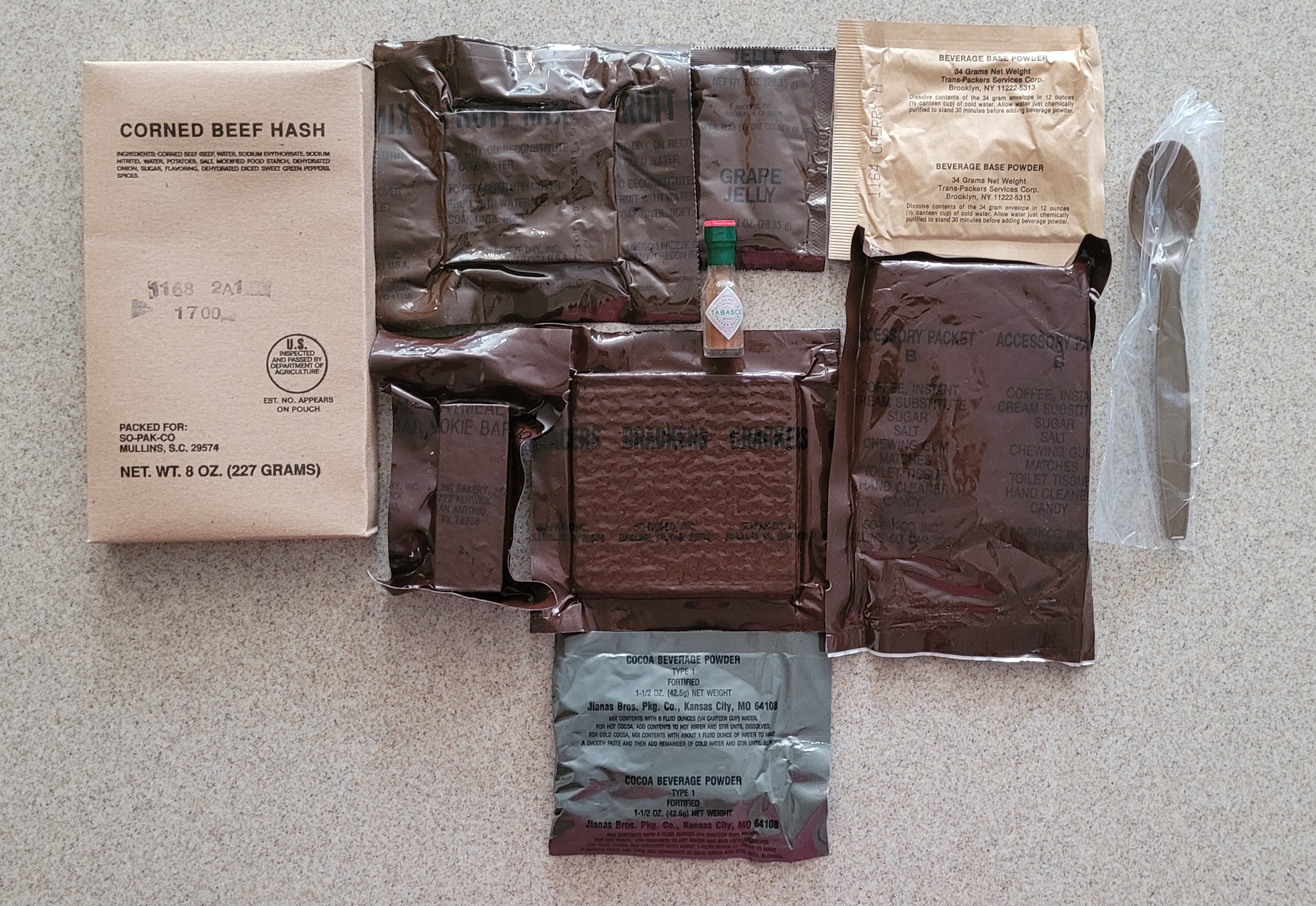 This was as good as it gets, beef hash, freeze dried fruit AND a cookie bar! The cherry drink mix was bad but I usually don’t drink them just I just give it a taste. Every thing else was great. I decided to mix the coffee, cocoa and creamer together this time, glad I did. No funky aftertaste or anything and the jelly still had a hint of grape flavor.