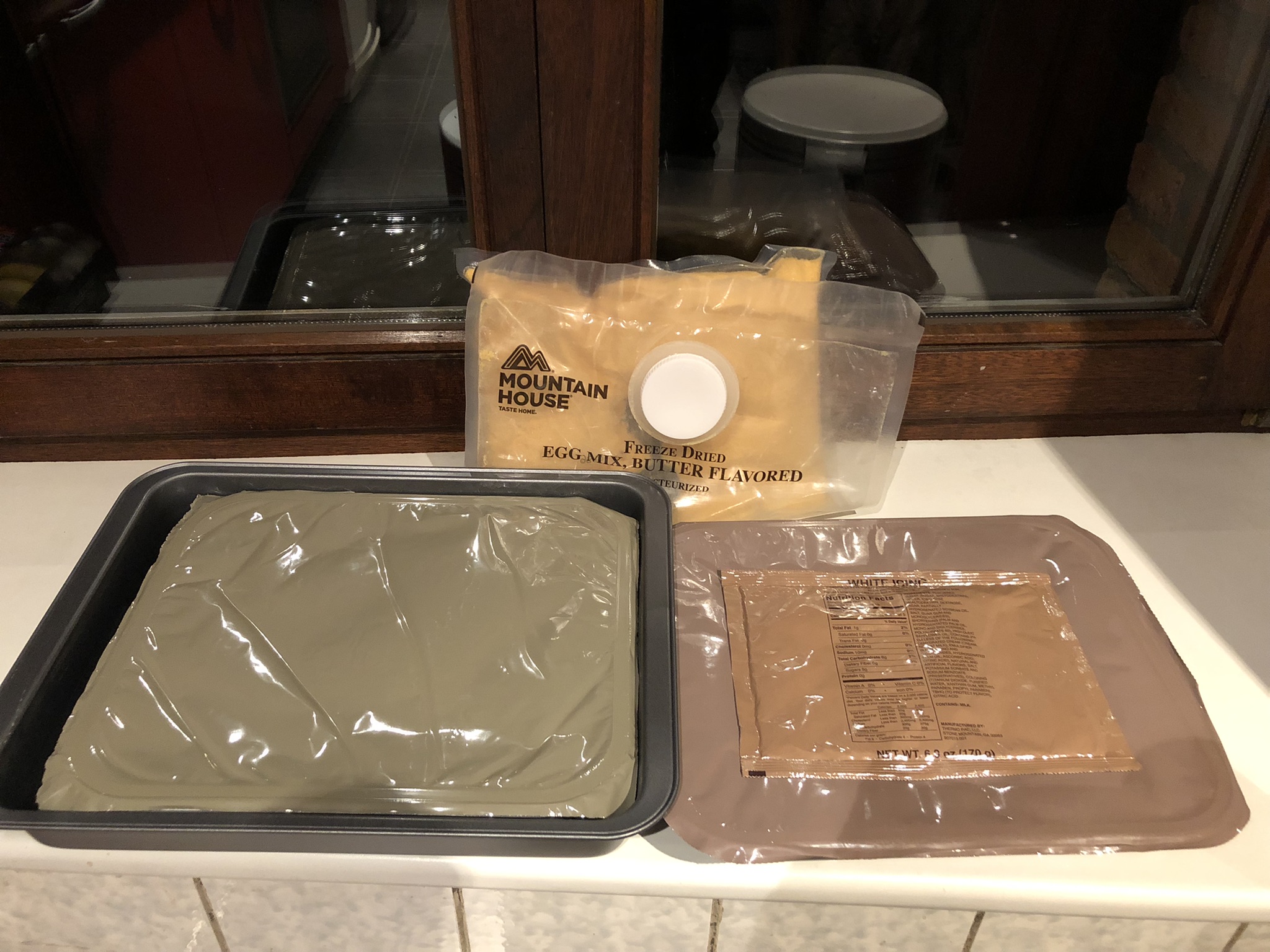 Sunday we started with bacon and eggs. The eggs came from the MH T-18s freeze dried scrambled eggs