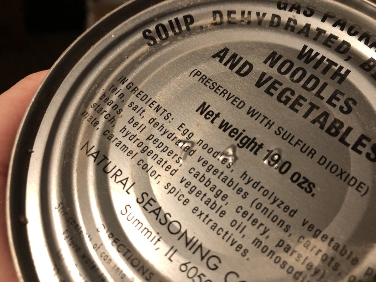 Housil, I think asking the manufacturer is a good start. By the way, that can of chili con carne with beans is exactly the same as the one I ate many years ago!