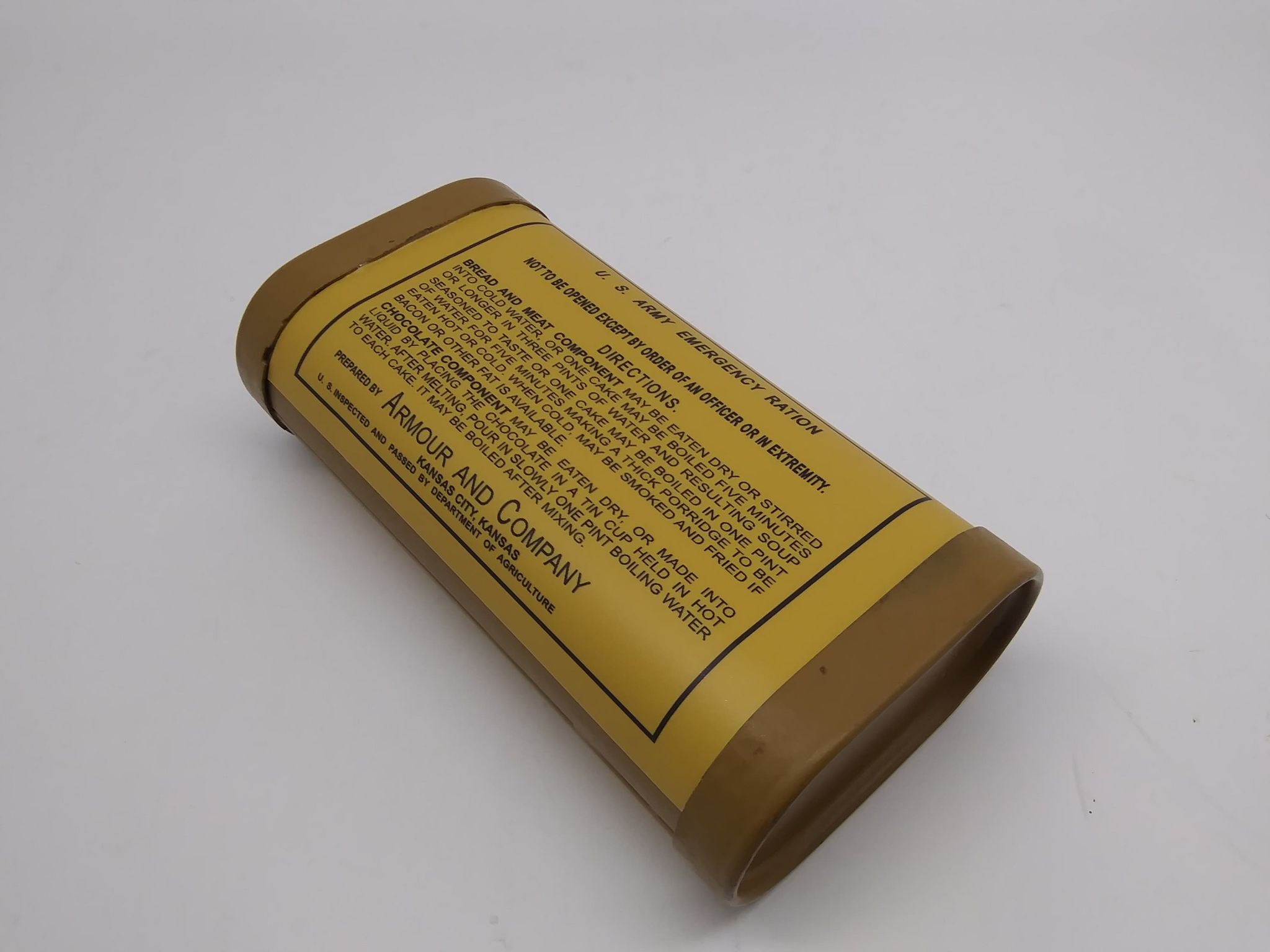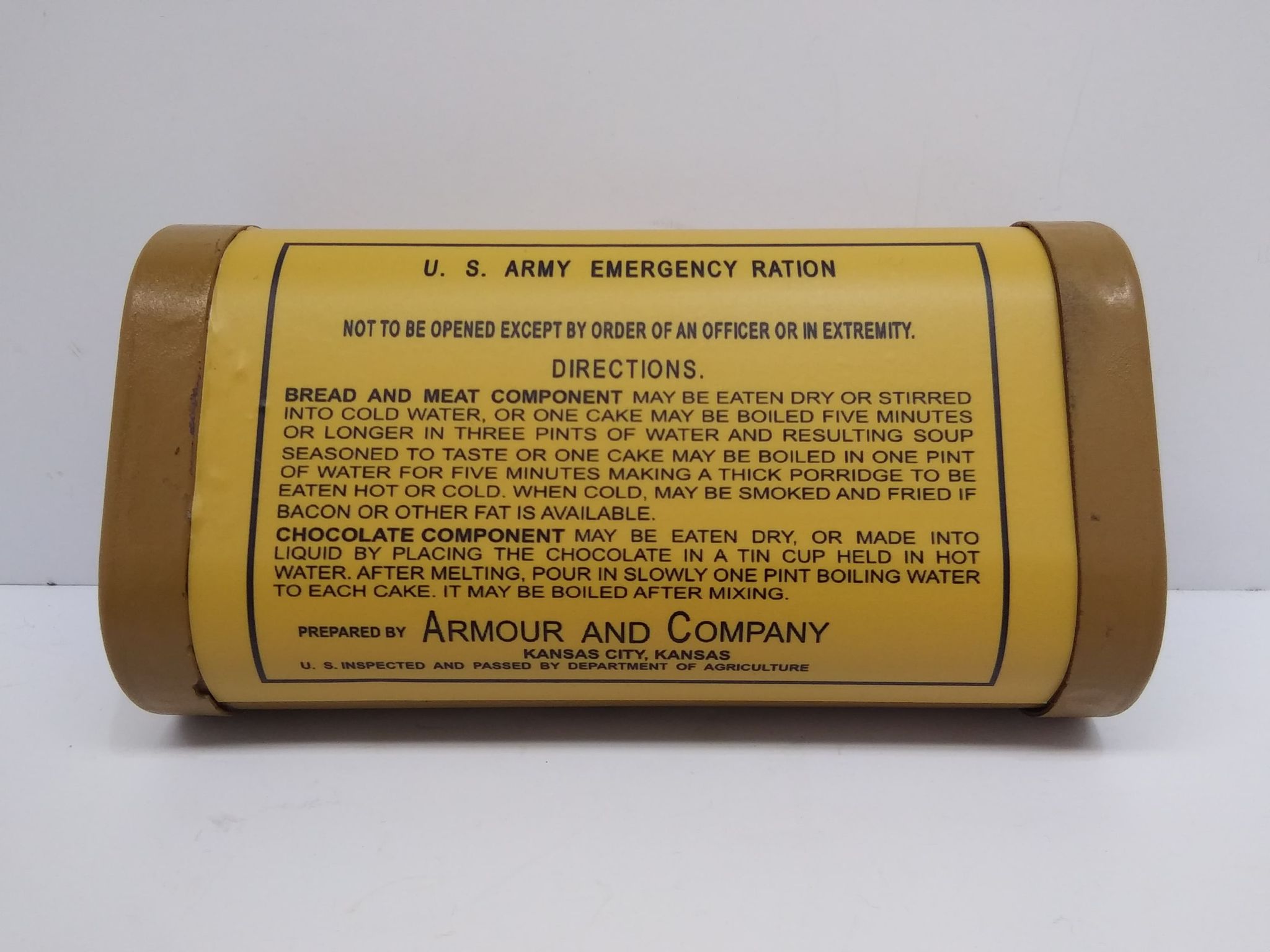 What Price Glory has produced some excellent reproductions, and without Jerry’s efforts the reenactment community at large would not have the broad spectrum of niche rare reproduction items that we do. The M1906 Armour and Company Emergency Ration Tin (link below) recently released is yet another example of a sorely needed item. There are some improvements which can be made to it though, those being a two-tone color scheme with a brighter yellow body as seen on originals, a primed interior to prevent rusting, and more accurate scaled markings.