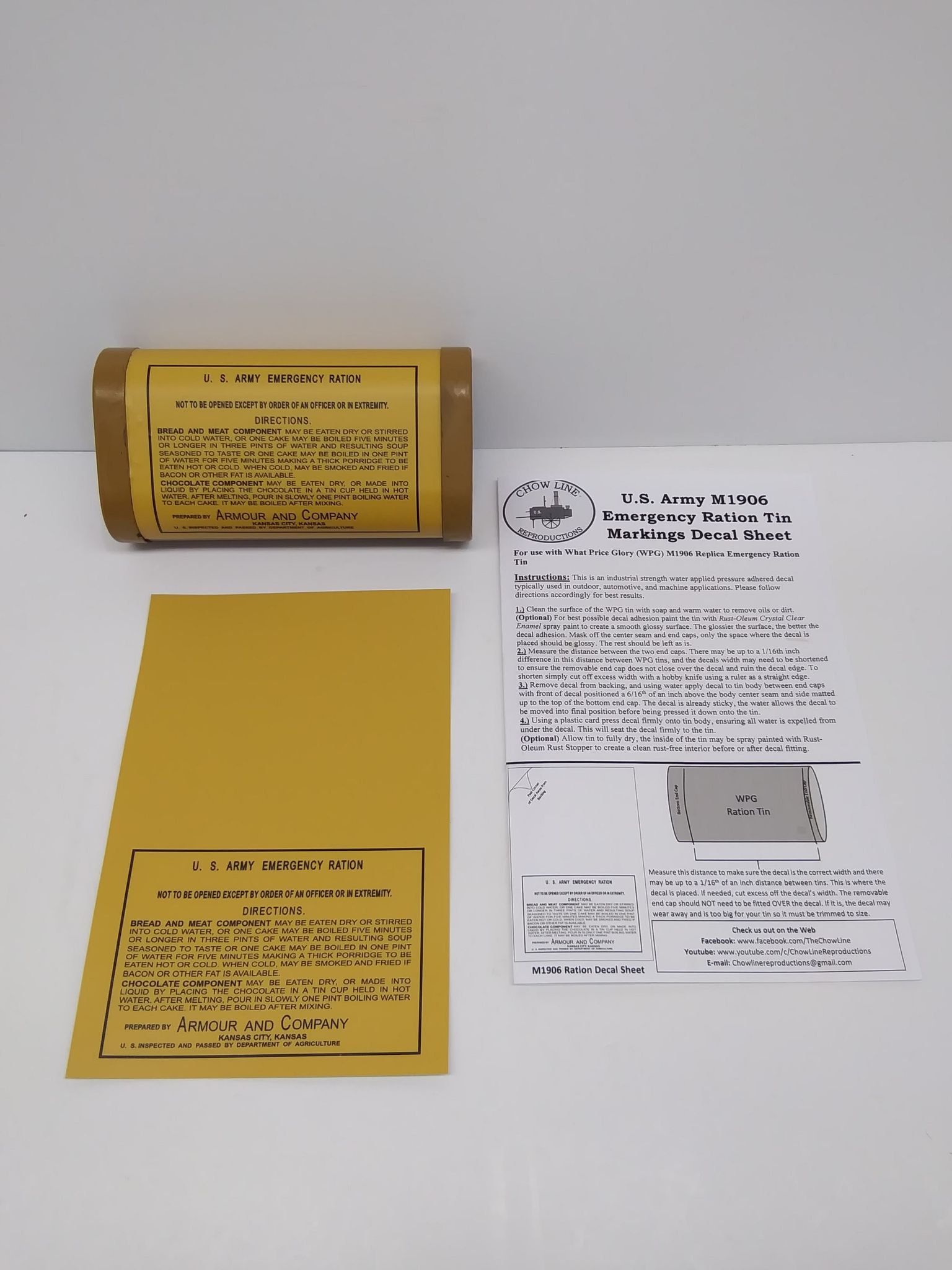 Title the E-mail:“M1906 Emergency Ration Decal Sheet Order.”