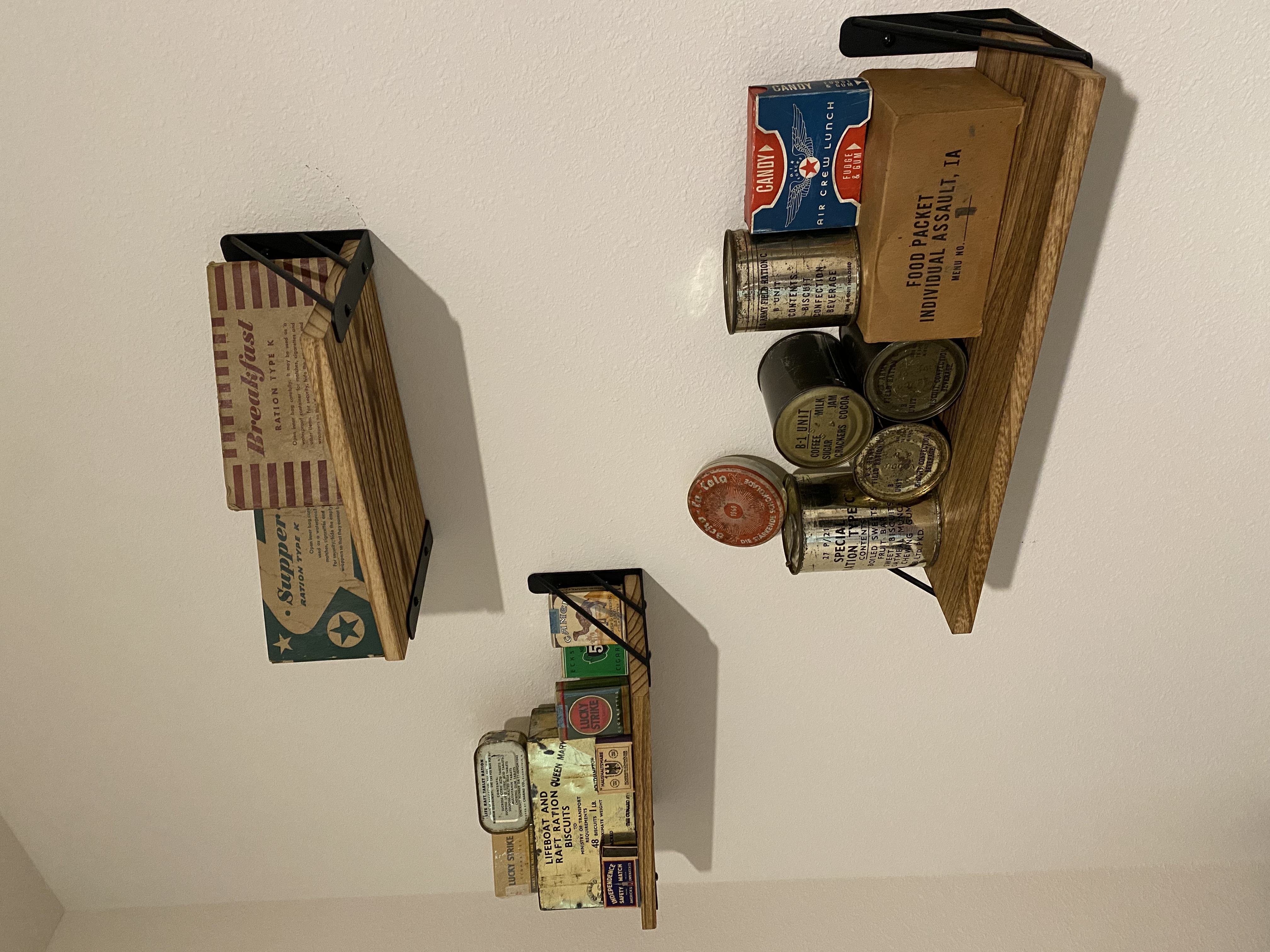 Moved out of our apartment and into a house and finally was able to convince the wife to split the office with me (she works from home half the time). She helped me set up a corner by my computer desk for my ration display, and I think it came out pretty great! Don’t have room for everything but it fits a majority of my most prized rations. Meant to post these a while ago but got sidetracked!