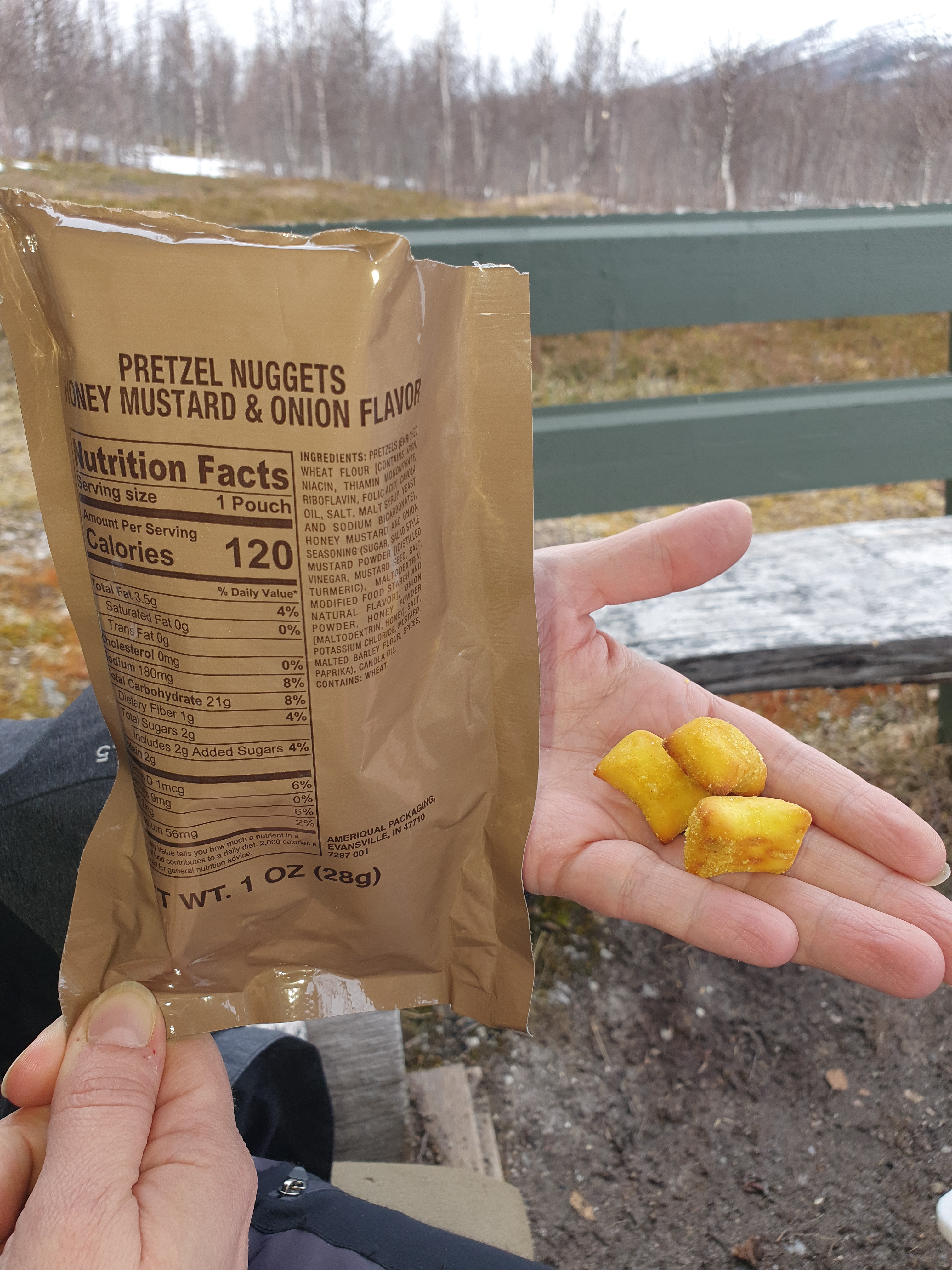 Opened a mexican chicken stew, sorry no pics of it but it was a good meal but the big thing was the Pretzel nuggets honey mustard & onoin flavor in the meal. Date of making: These was a yumi treat, not to much mustard and the rigth amount of honey and onion and a good crunch.
