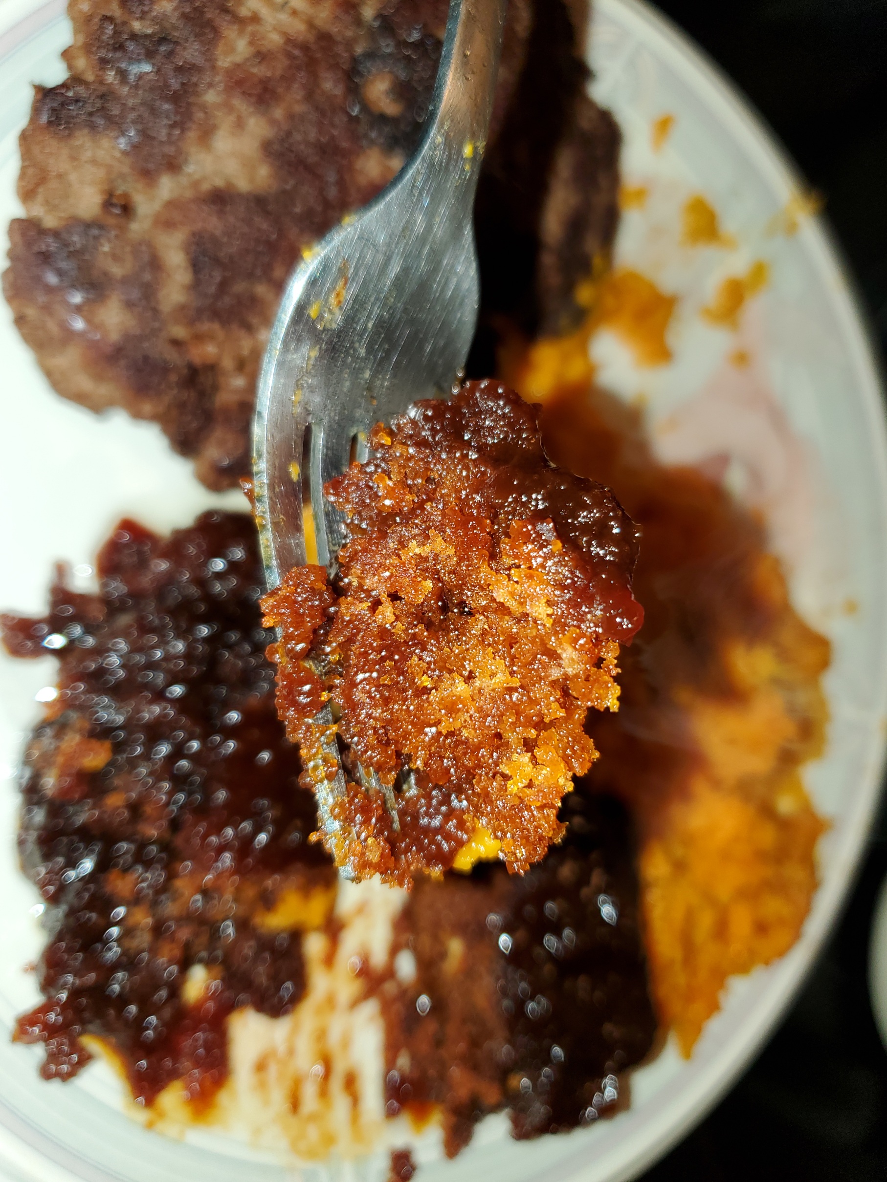 That was really quite good. I microwaved it, mixing it up as I went. I was expecting it to be much more like mollasses, but that was quite a bit more sweet than I was anticipating. Same sort of bread pudding as the other brit desserts, which is quite dense and not amazing by itself. Mixed in with the treacle syrup, it was a dream. Well worth blowing through the last bit of calories for the day, haha. Glad I was ahead on protein before I had this.