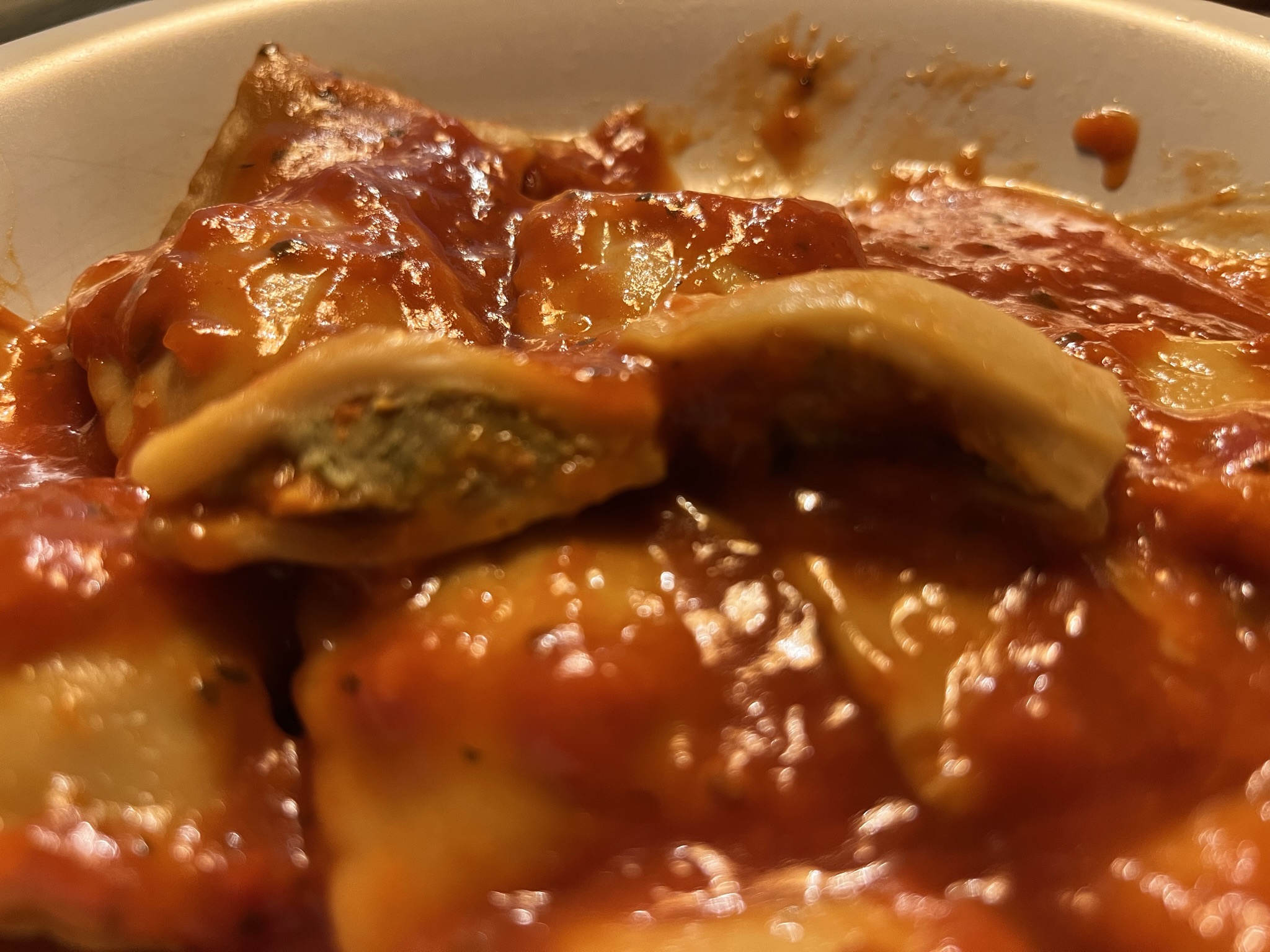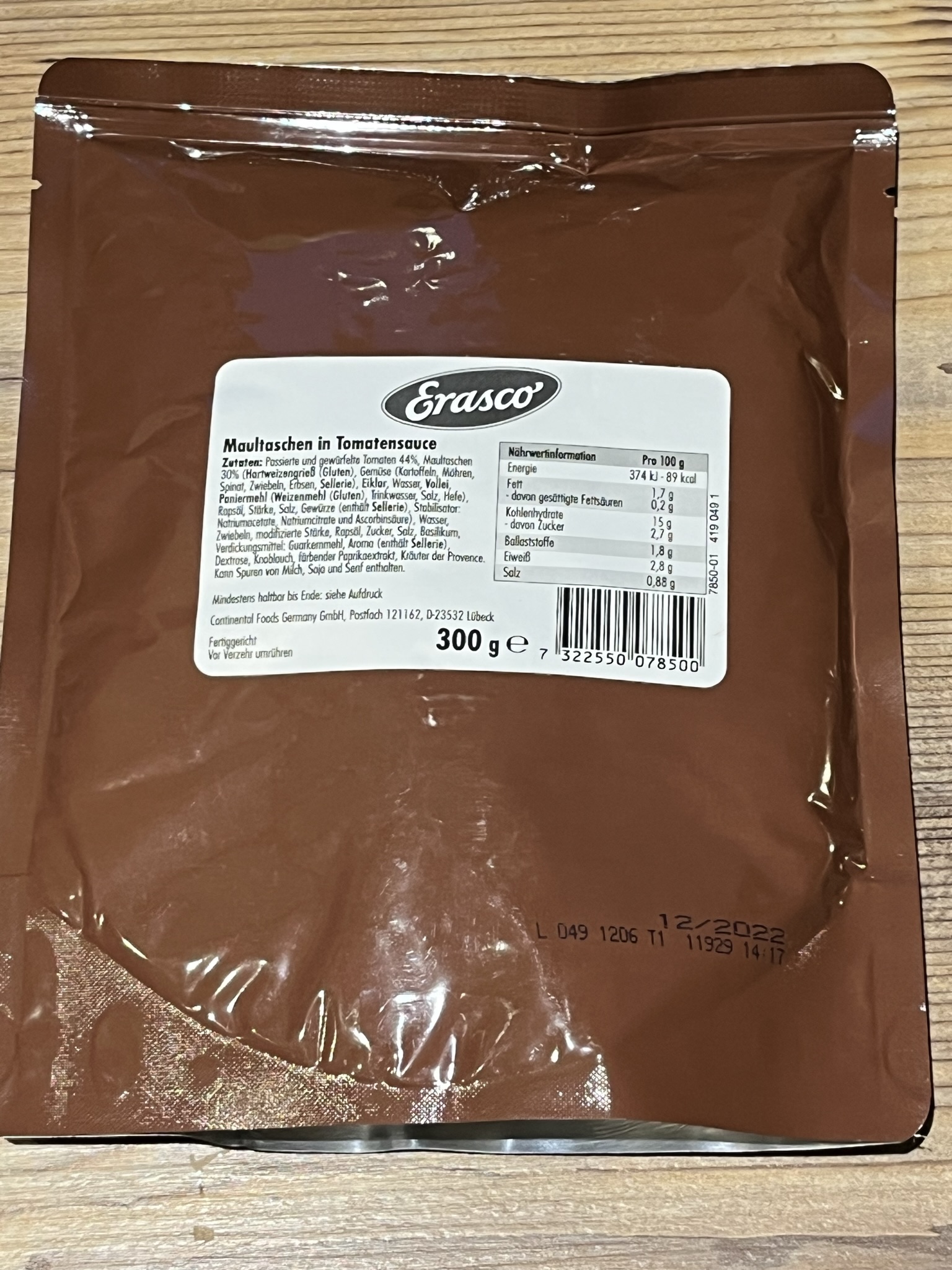 looks like any tortelini in tomato sauce, not like German "Maultaschen in broth"