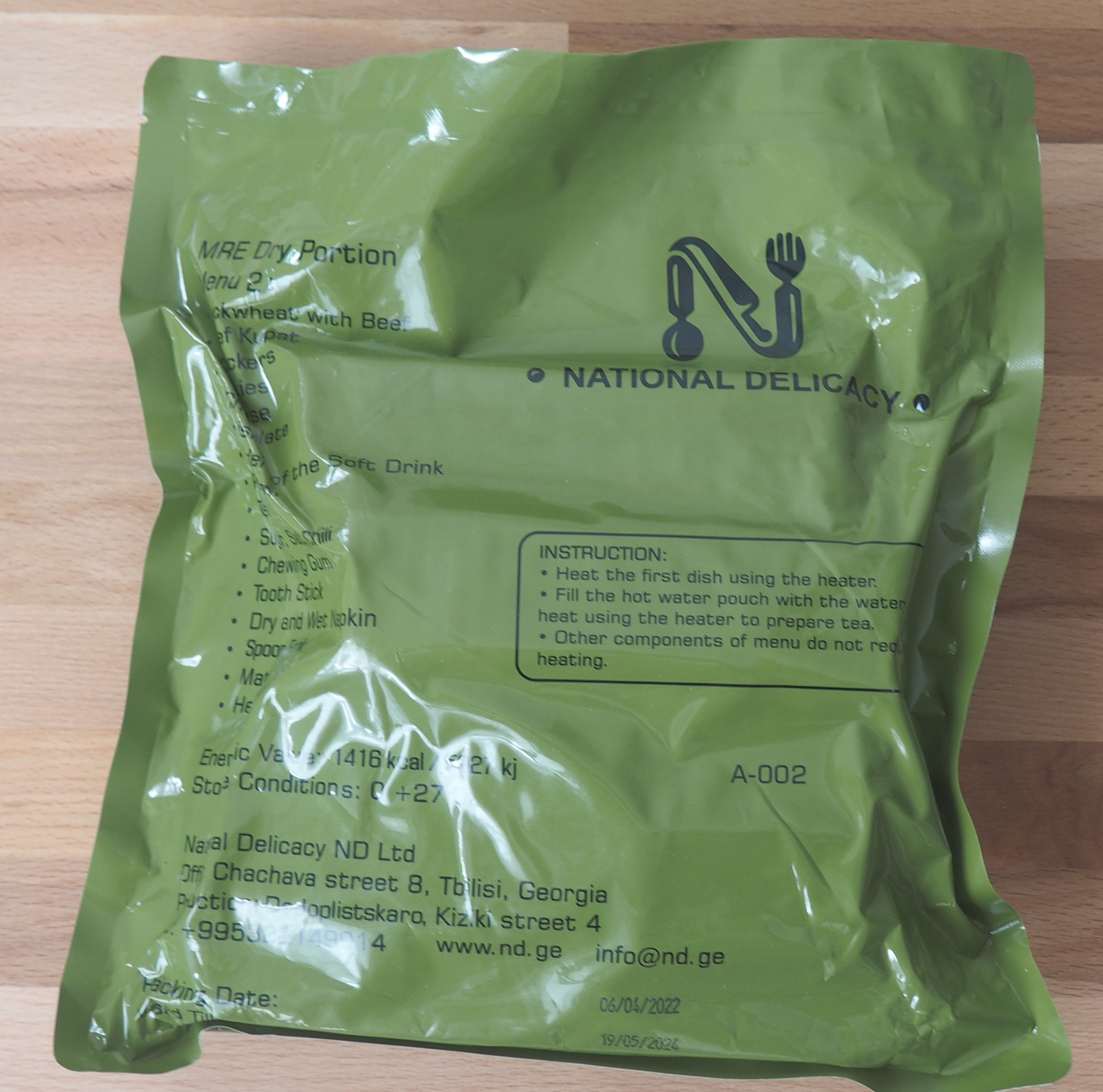 I have 1 pcs of Georgian army single meal ration menu 2