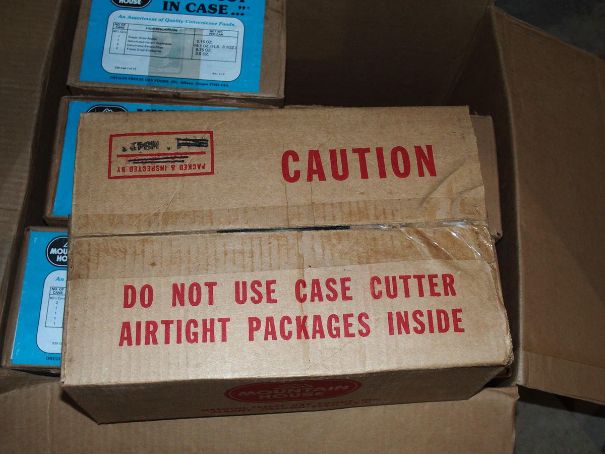 I contacted the seller and asked a few questions. The boxes had date codes on them that indicated they were from 1982. After some discussion, we came to an agreement on price. I then drove up to north Georgia and picked up these boxes of vintage food. As we loaded the boxes into my vehicle, I asked the seller how he had come to have them. As he described it, he was helping an elderly fellow around his house and this gentleman asked if he'd like to have these things. The older man had apparently purchased this "food insurance" 40+ years ago and had kept it in a cool, dry place. For whatever reason - perhaps he had purchased items to replace these - he no longer felt a need to keep them.
