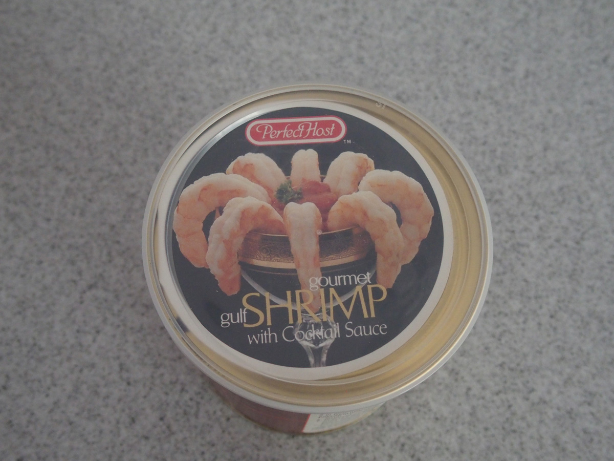 Inside is what appears to be a #2-1/2 can containing the shrimp.