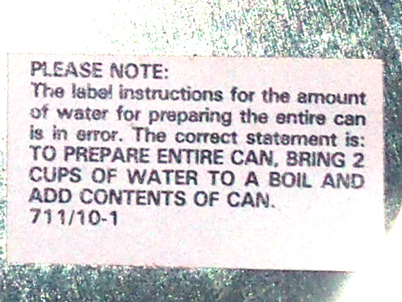 One thing that I noticed (see picture of the back of the can with "directions") was that Oregon Freeze Dry Foods was a subsidiary of The Seven-Up Company. I was unaware of that.