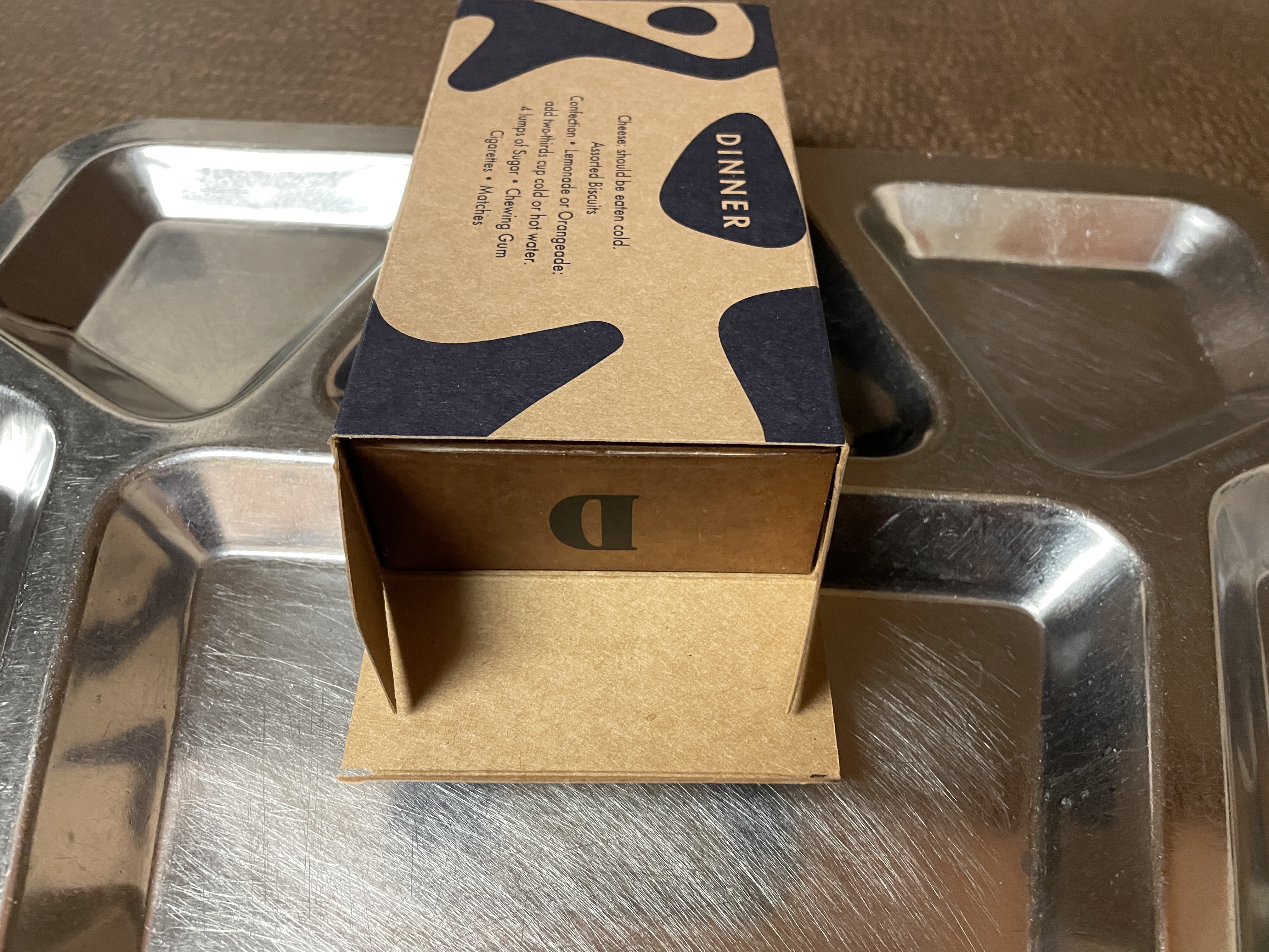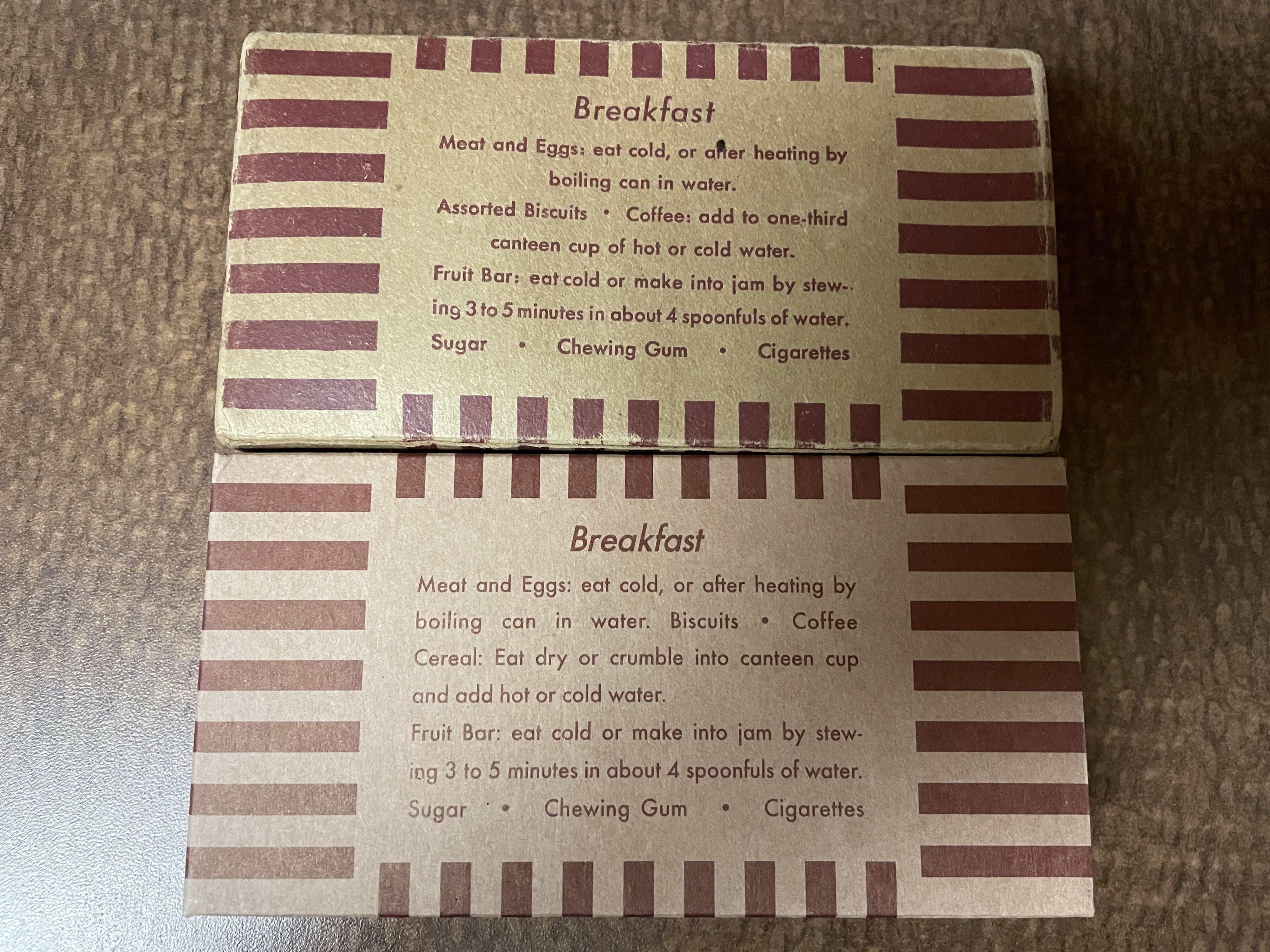 - The cheese was in the little cardboard sleeve. I noticed two things missing from this ration: a P-38 can opener and a small wooden spoon that should have been included. I'll give it a pass, I'm sure QC issues like this were common during the war anyway. ;)