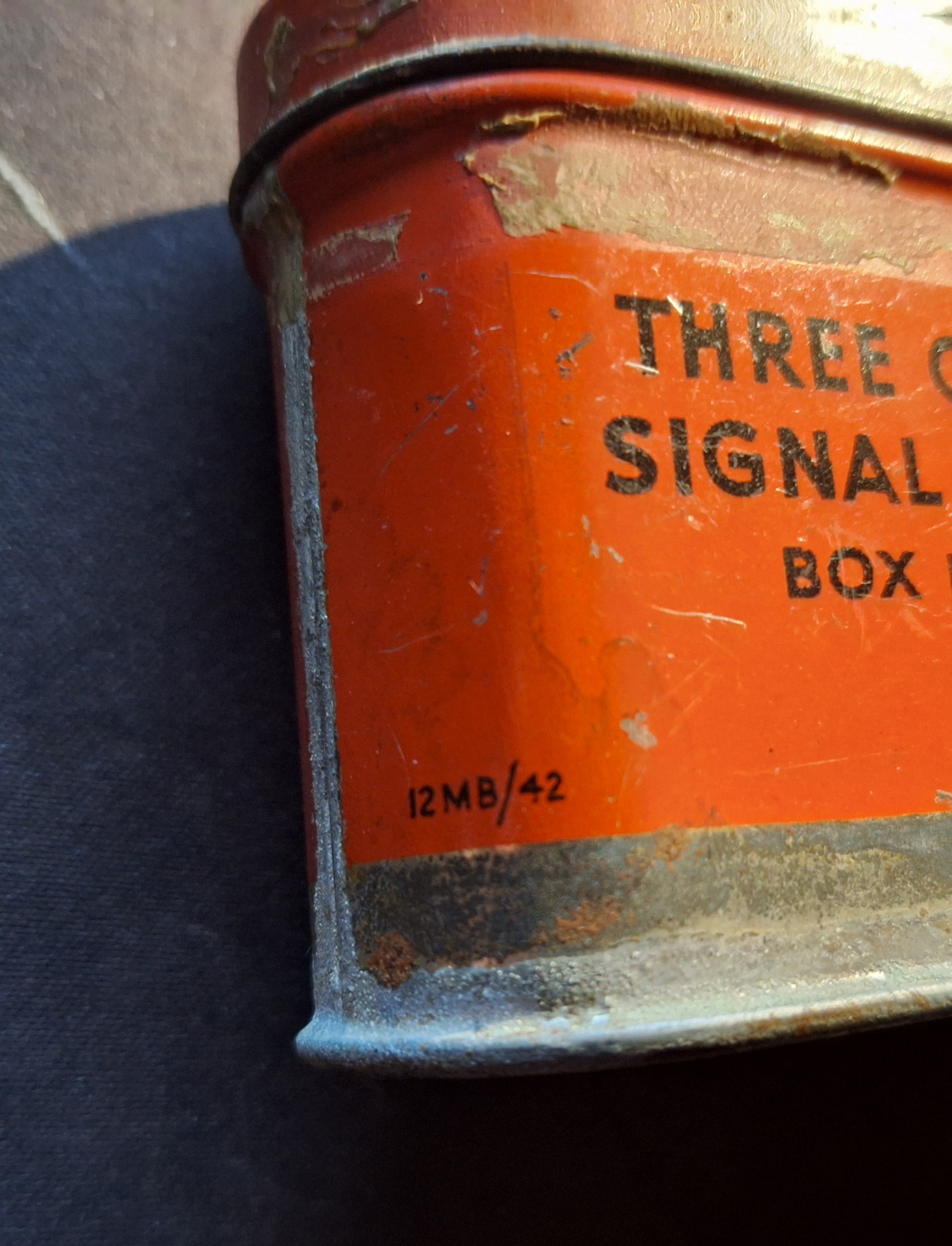 RAF WW2 1942 red flare tin. Empty. 20€.
