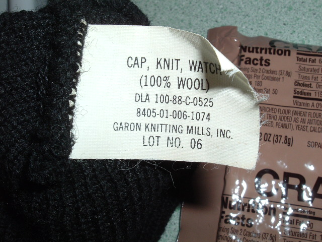 I'd say it's hard to say, the tag looks like it might be a copy of the original. Most caps I have seen are from DPSC and will have the DPSC tag in them. I don't know where this is from, but the caps are made of a synthetic material that is polyester. Also it's quite strechable and doesn't shrink as much as the wool watch caps.