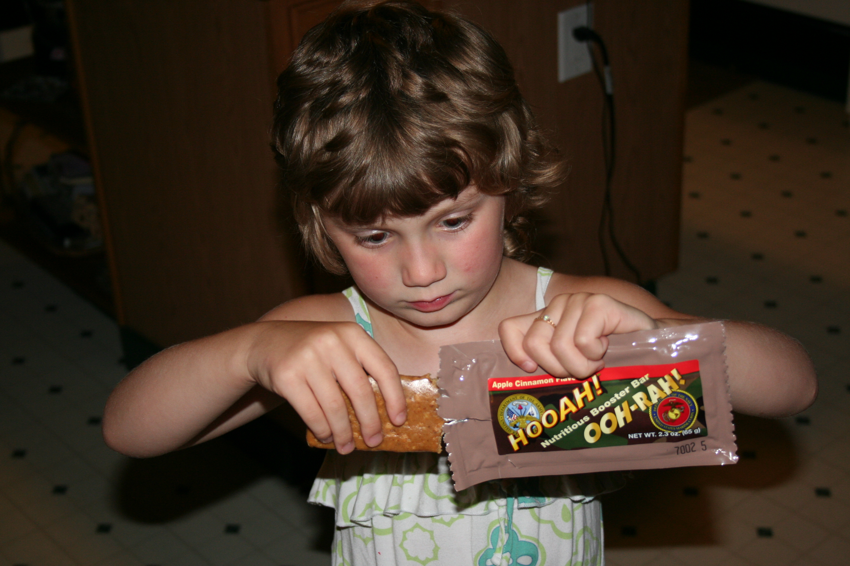Cute picture. And it looks like you had one of those rare (to me, at least) combo Hooah!/Ooh-Rah! bars.