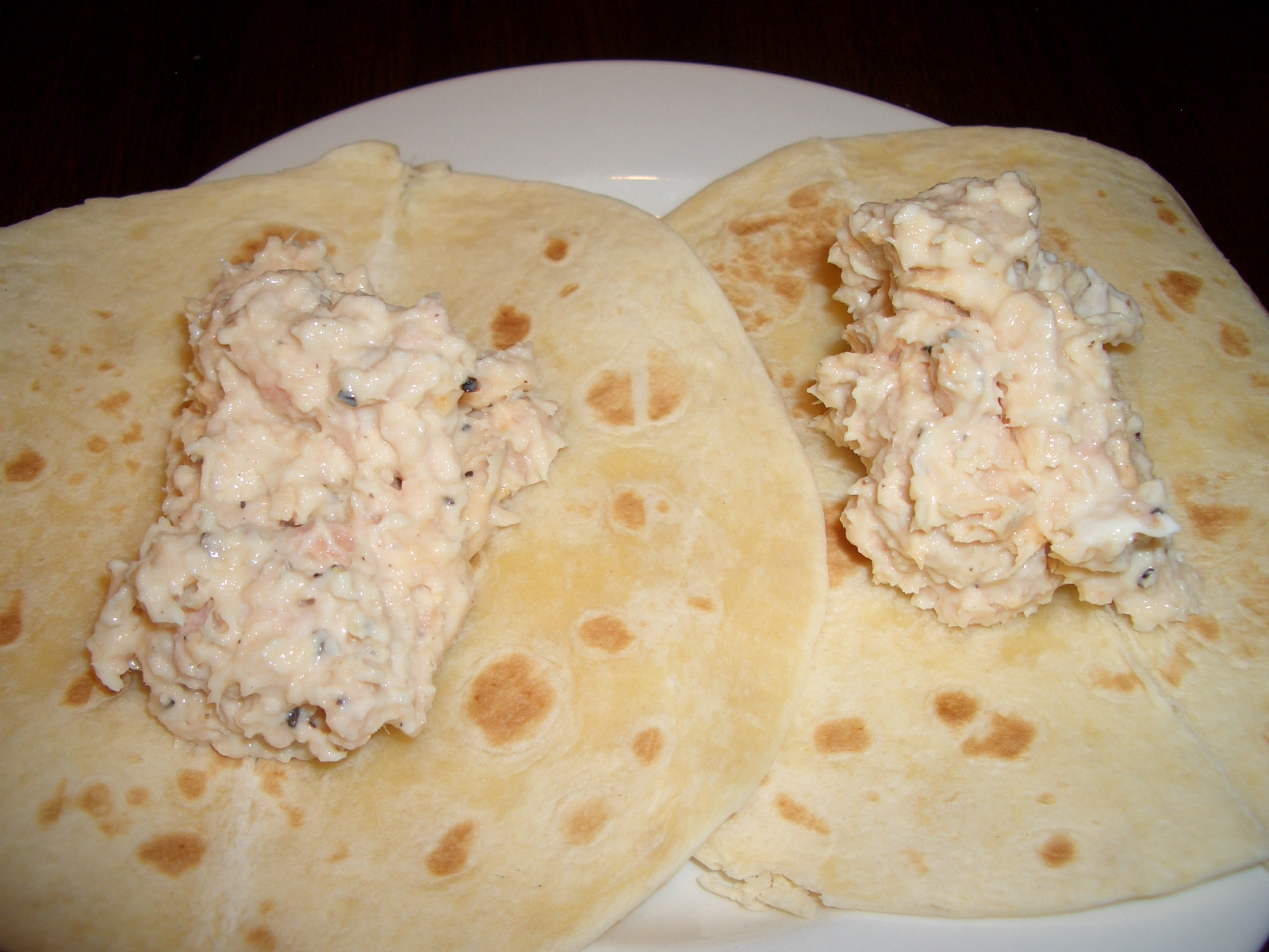 I mixed the tuna and mayo together and split up the batch onto the 2 tortillas. Had to put on my own tabasco since the MRE didn't come with it. Why they don't put tabasco into every MRE is still one of those unanswered mysteries of the world.