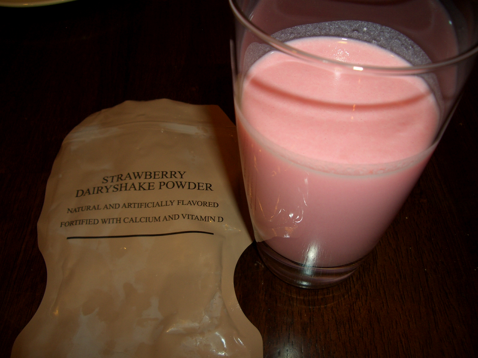 I poured some water into the Strawberry Dairy Shake packet (helpful tip: put more water than they actually recommend, otherwise you’ll end up with what looks like pink glue