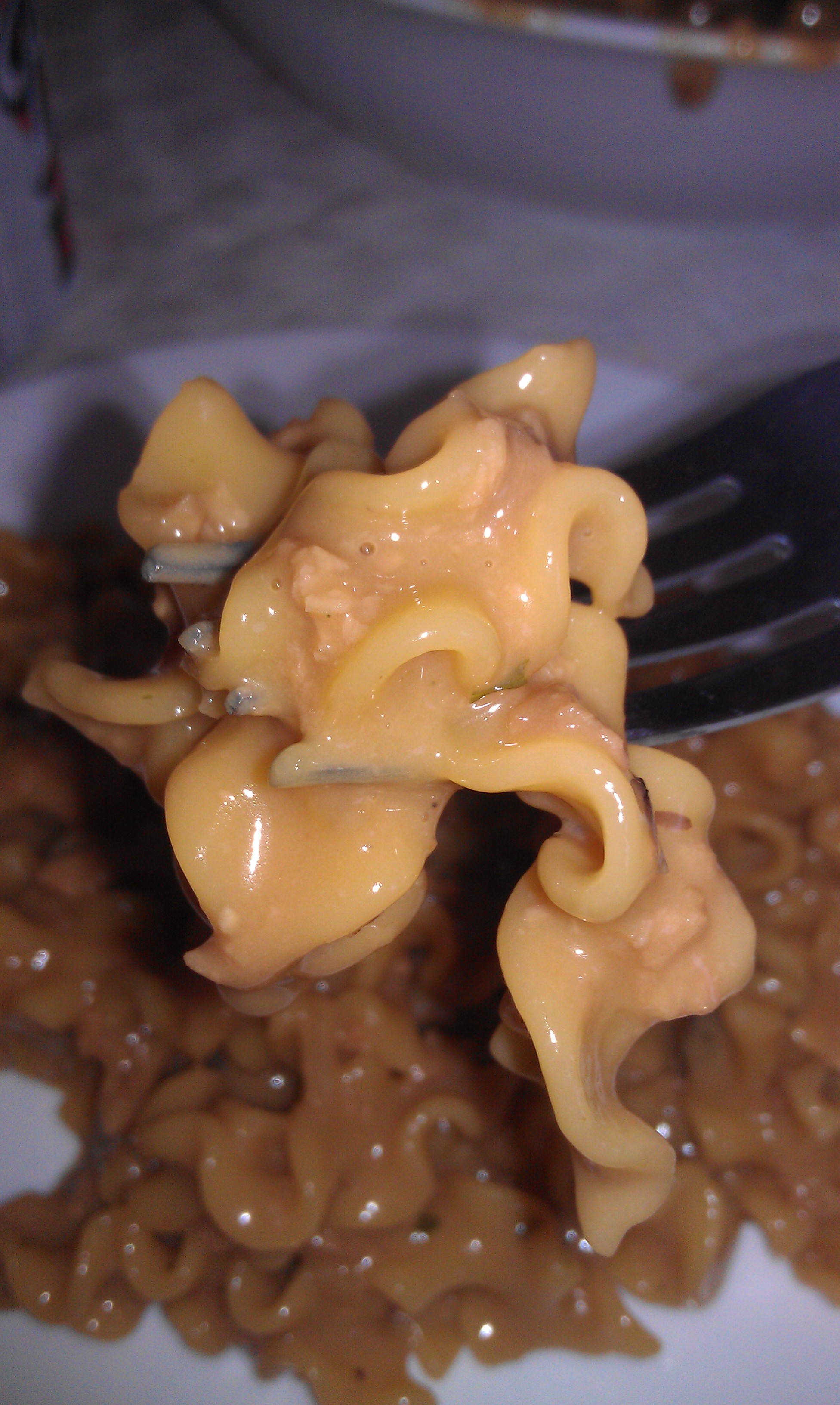 TASTE: I was immediately floored by the creaminess of the sauce. The noodles while appearing to be quite soft were actually a perfect al dente! I was more impressed with the texture than the overall taste though. Without large chunks of meat, there was not a whole lot of meat taste. There was light seasoning that did not do a lot to impress me. Not bad, just bland. A blast of garlic sea salt and a dash of pepper brought it to life for me, and I quite enjoyed it.