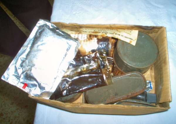 Each consisted of a small cardboard box, placed inside a plastic bag sealed with tape, and contained - in theory - sufficient food for one man for one day. The No. 30 had more food than the No. 20, but there wasn't a whole lot of difference between the two. The No. 30 had nine (yes, 9!) cans, whereas the smaller No. 20 had 6.