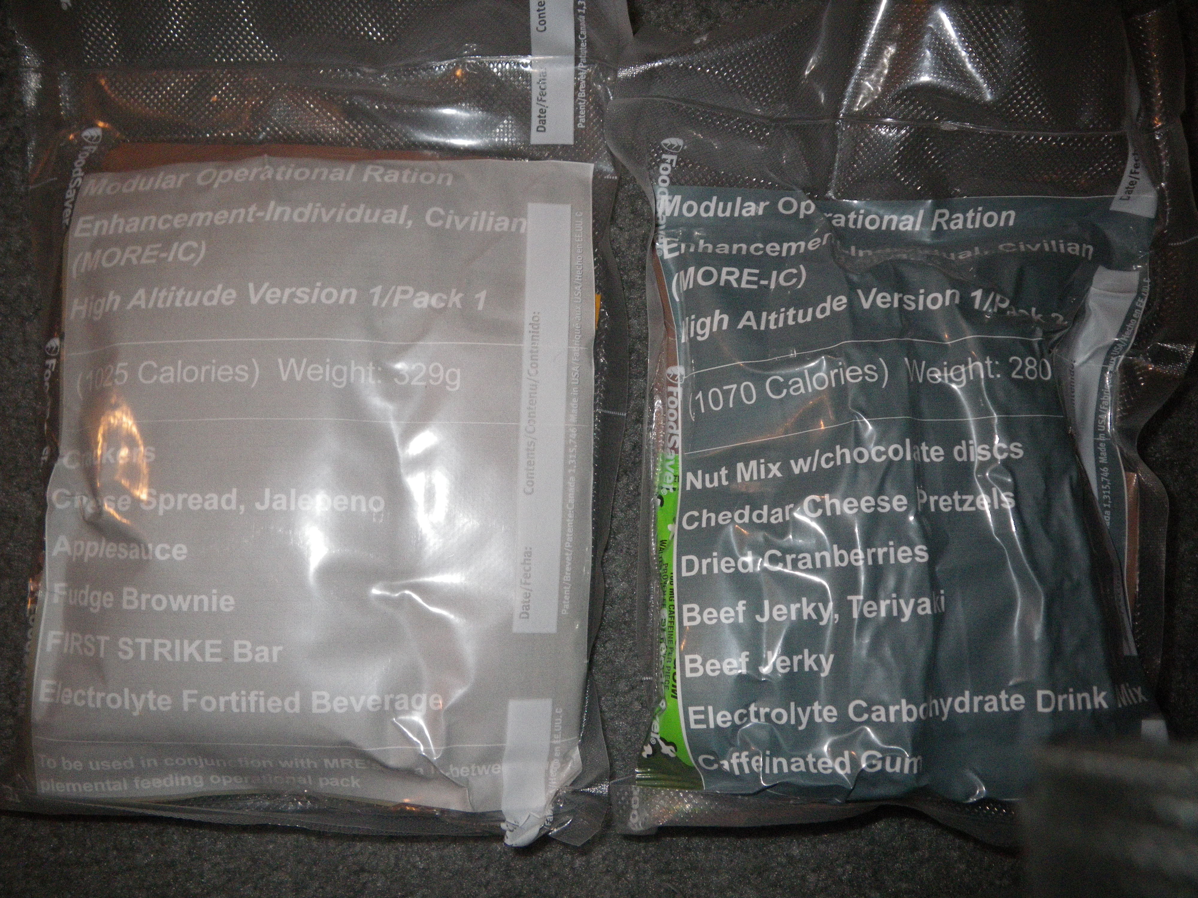 Hey everyone what I have going on right now is another one of my MRE INFO.com ideas. May I present the new MRE INFO.com M.O.R.E rations or the Modular Operational Ration Enhancement-Individual Component (MORE-IC). These are very similar to the MORE rations that Natick Research Laboratories came out with about 2-3 years ago in response to the need for a better feeding system for Special Operations Forces and troops working at high altitudes. I have read the Natick Labs technical Power Point report that describes the MORE rations. The MORE rations are to be used in conjunction with MRE’s during mountain operations and situations where troops were burning more calories in the high altitude even after consuming an MRE or several MRE’s such as in the mountainous regions of Afghanistan.