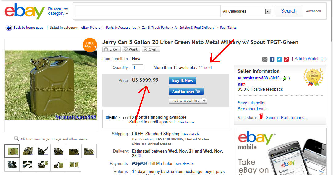 This guy sales jerry cans for almost $1000 per Pcs and has already sold 11!!!!