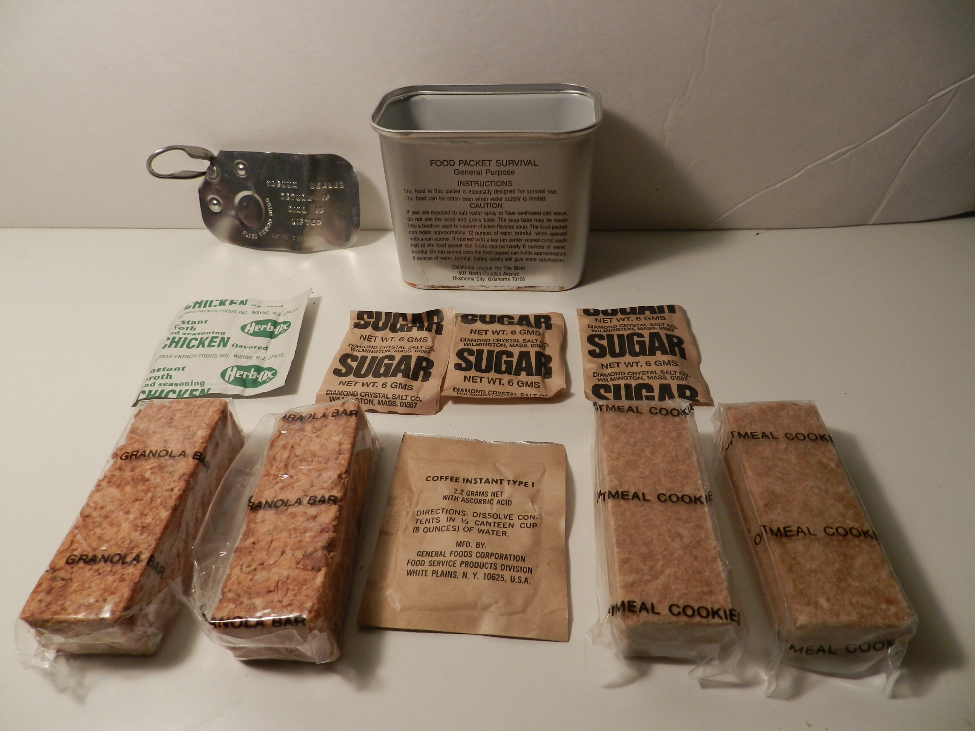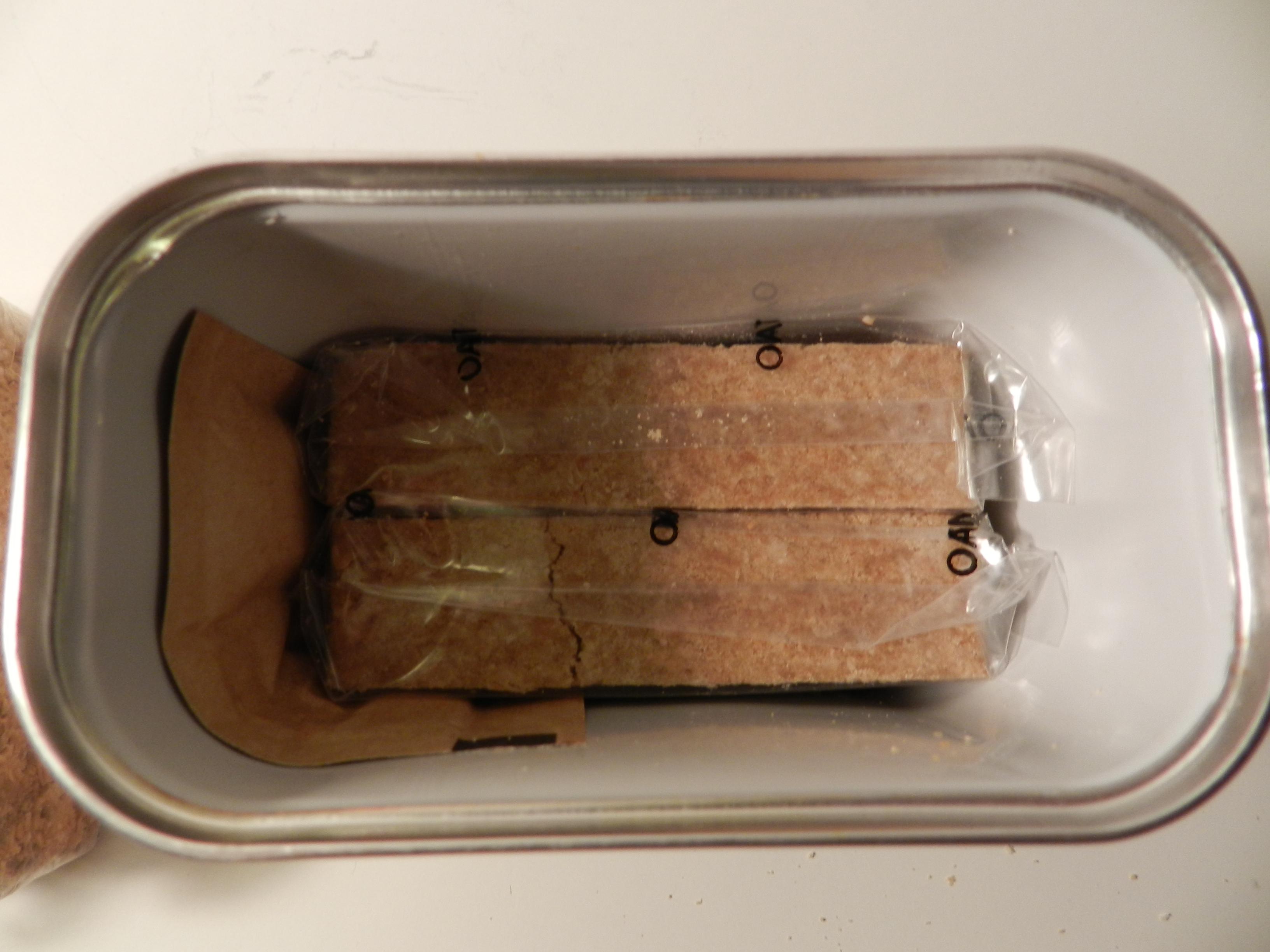 Back before they updated the GP Survival Food Packet in the mid 1990's, they were in the old-style tins such as these. I feel, the issue with this design for long term food storage purposes is unstable against fluctuating temperatures. So they changed the design to that newer water-resistant wax cardboard packaging with fully-vacuum sealed packaging for the food unlike the semi-sealed clear packaging around these old food bars.