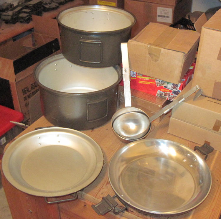 It´s two pots stick inside, you can use the lids as a frying pan. There are also two foldable scoops inside.