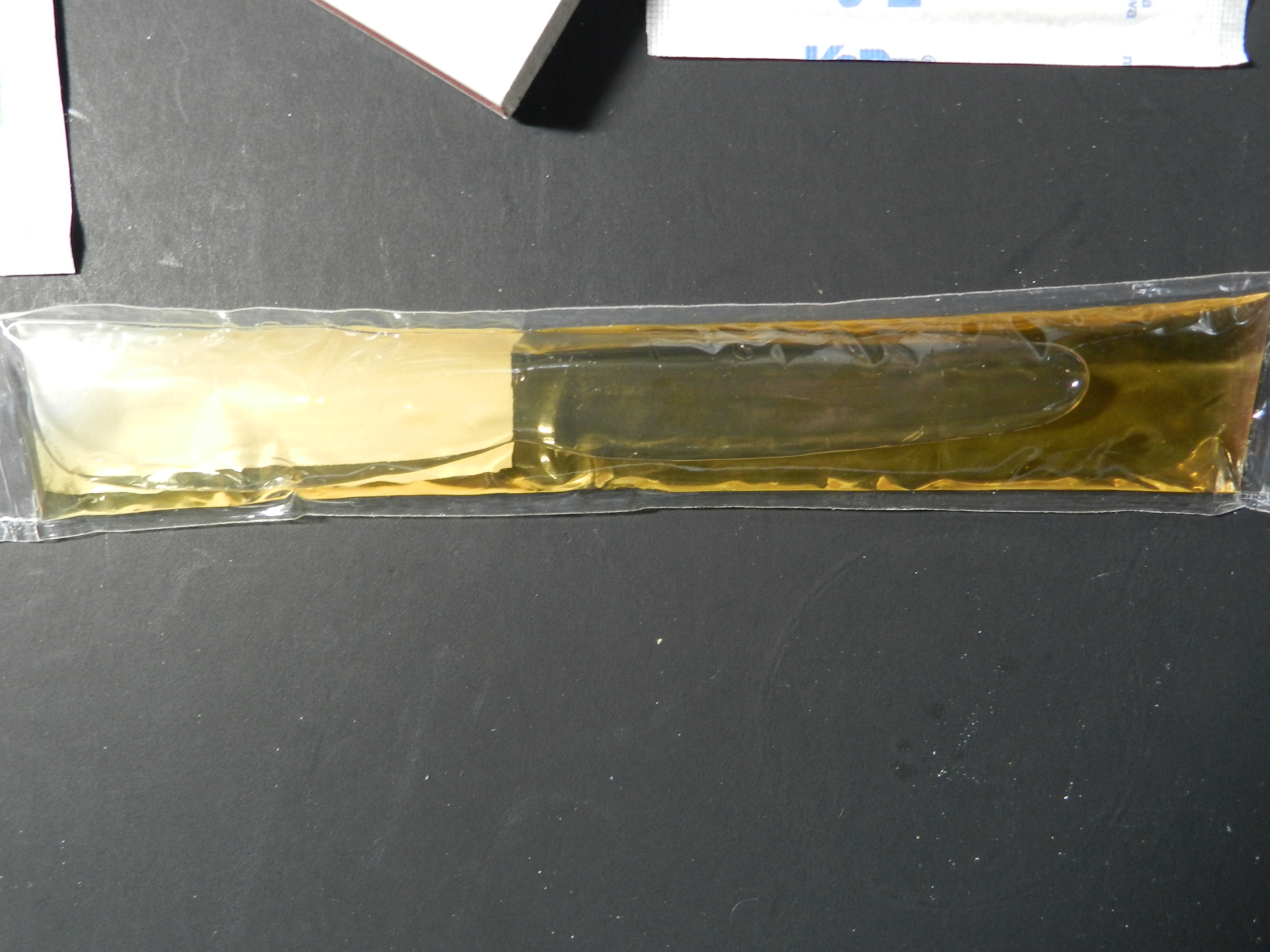 A chewy, rich chocolatey, hint of natural banana flavor cereal bar that was delicious, a cup of cappuccino that had a rich, nutty, and full flavor that wasn't sweet at all just the way I like my coffee, and of course.. the Cordial Alcohol.. what can I say it was a very good quality brandy not cheap.. it was more like a mid to top shelf quality even though in a plastic pouch. It didn't burn going down, and I picked up an almost sweet caramel undertone to it whilst sipping it along with the cappuccino as a direct accompaniment to the Cordial.